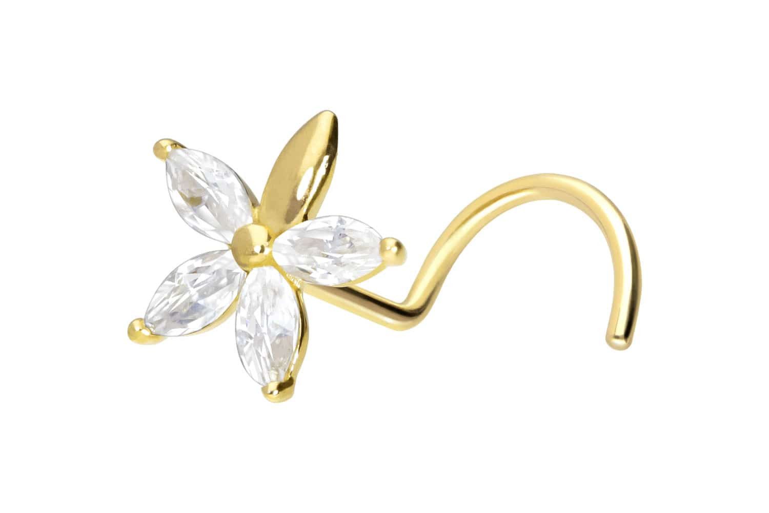 Nasenpiercing 14/18 Karat Gold Nasenstecker Spirale MOISSANIT-BLUME