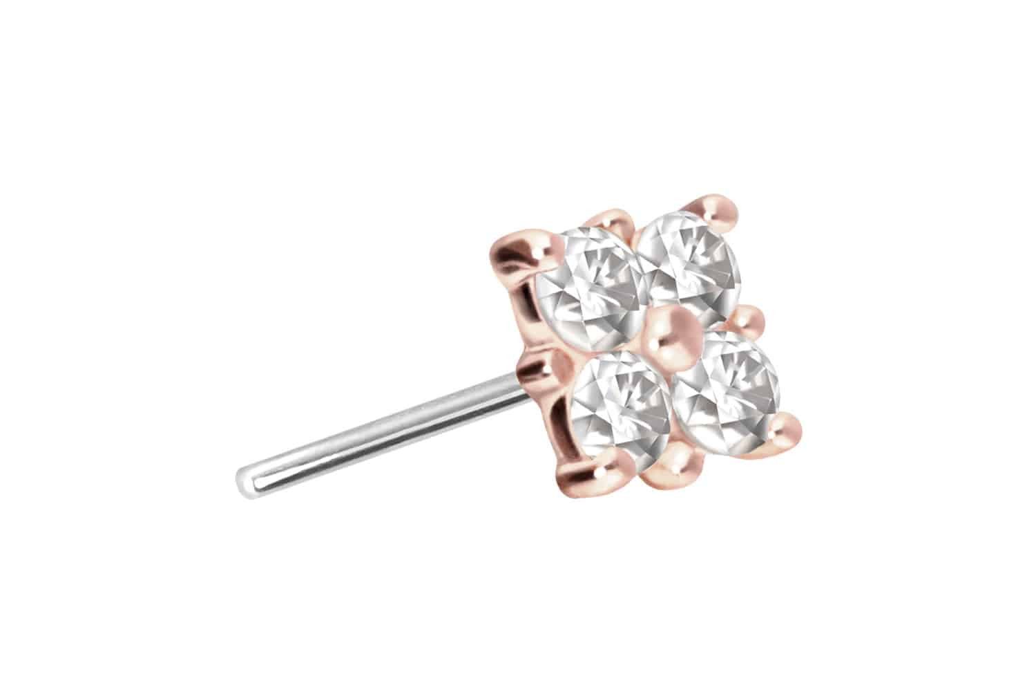 Piercing-Set 14 Karat Gold Aufsatz mit Titan Push Pin MOISSANIT-RECHTECK