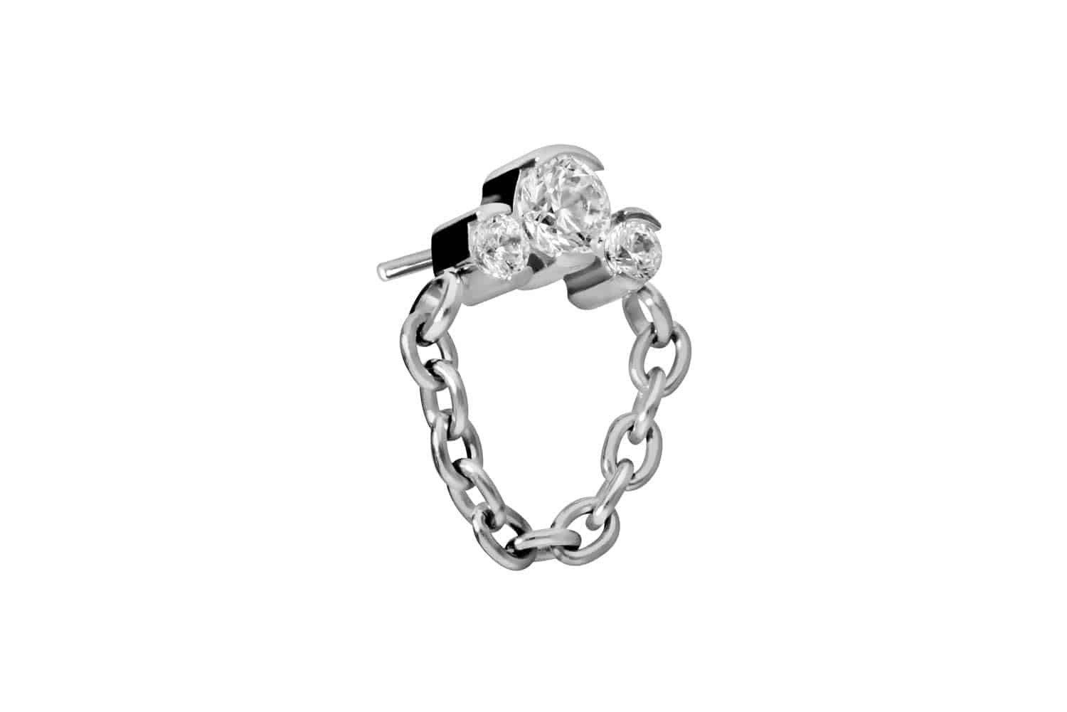 PIERCINGLINE Piercing-Set Titan Aufsatz mit Push Pin 3 EINGEFASSTE KRISTALLE + KETTE (Push Pins, 1-tlg)
