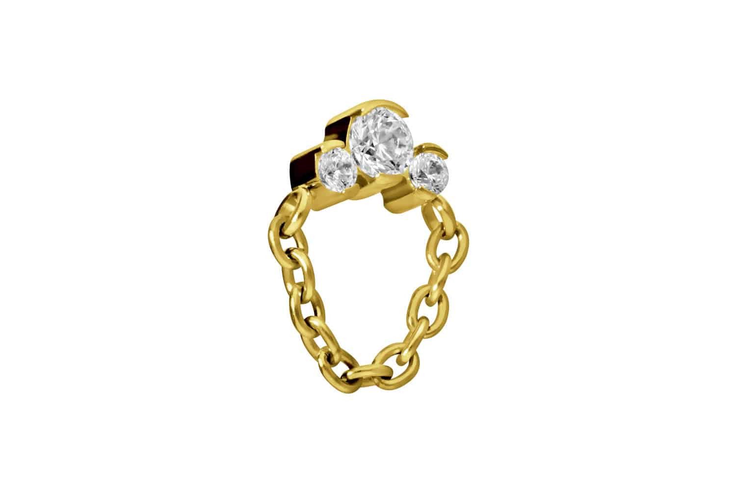 PIERCINGLINE Piercing-Set Titan Schraubaufsatz mit Außengewinde 3 EINGEFASSTE KRISTALLE + KETTE (Schraub-Aufsätze, 1-tlg)