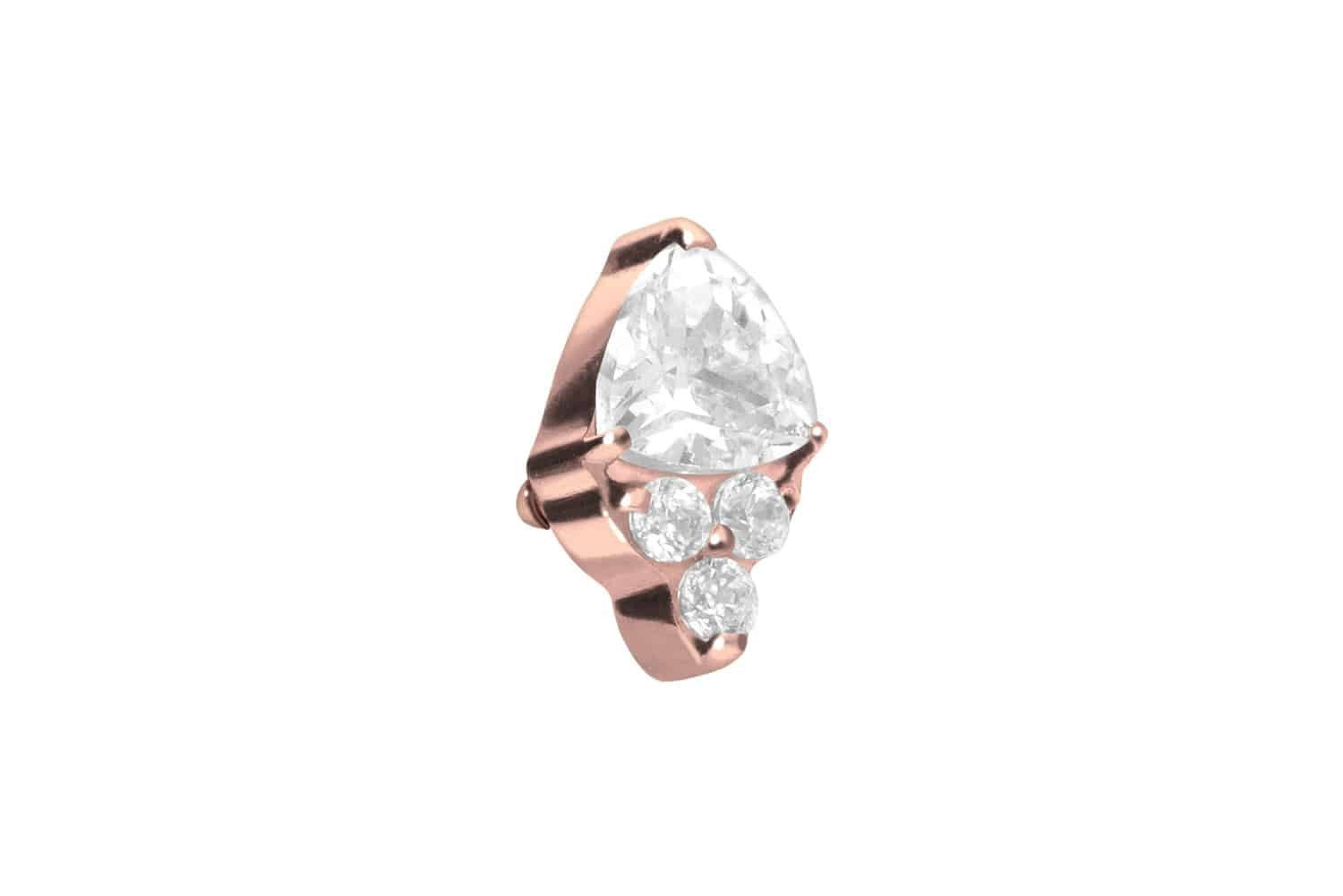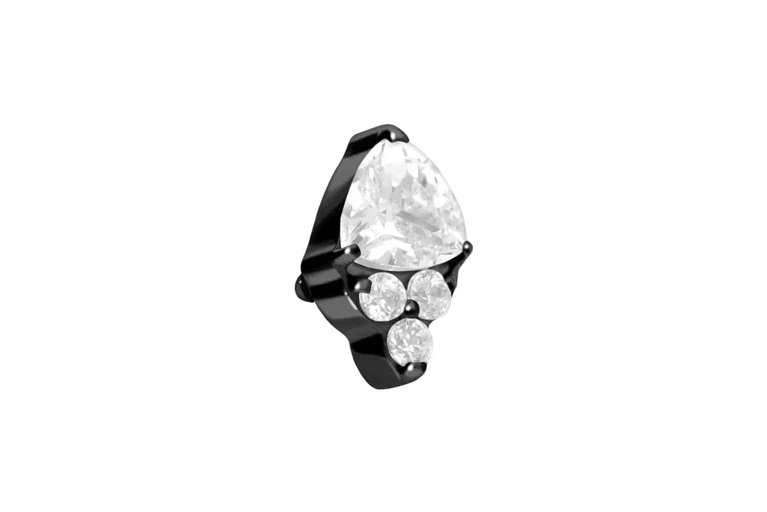 Dieser zeitlos schöne Schraubaufsatz in Form von eingefassten Kristallen wurde speziell für unsere Innengewinde-Piercings entwickelt. Seine Fassung besteht aus hochwertigem Titan, das sich unter anderem durch gute Hautverträglichkeit und hohe Beständigkeit auszeichnet. Ebenfalls zu dessen spezifischen Materialeigenschaften gehört Farbechtheit, die sowohl bei der silberfarbenen als auch bei der schwarzen, gold- und roségoldfarbenen Варианты mit PVD-Beschichtung gewährleistet wird. Das 0,9 mm starke Außengewinde des Aufsatzes ist mit all unseren Produkten, die über ein solches Innengewinde verfügen, kompatibel, sodass sich vielfältige Kombinationsmöglichkeiten ergeben.