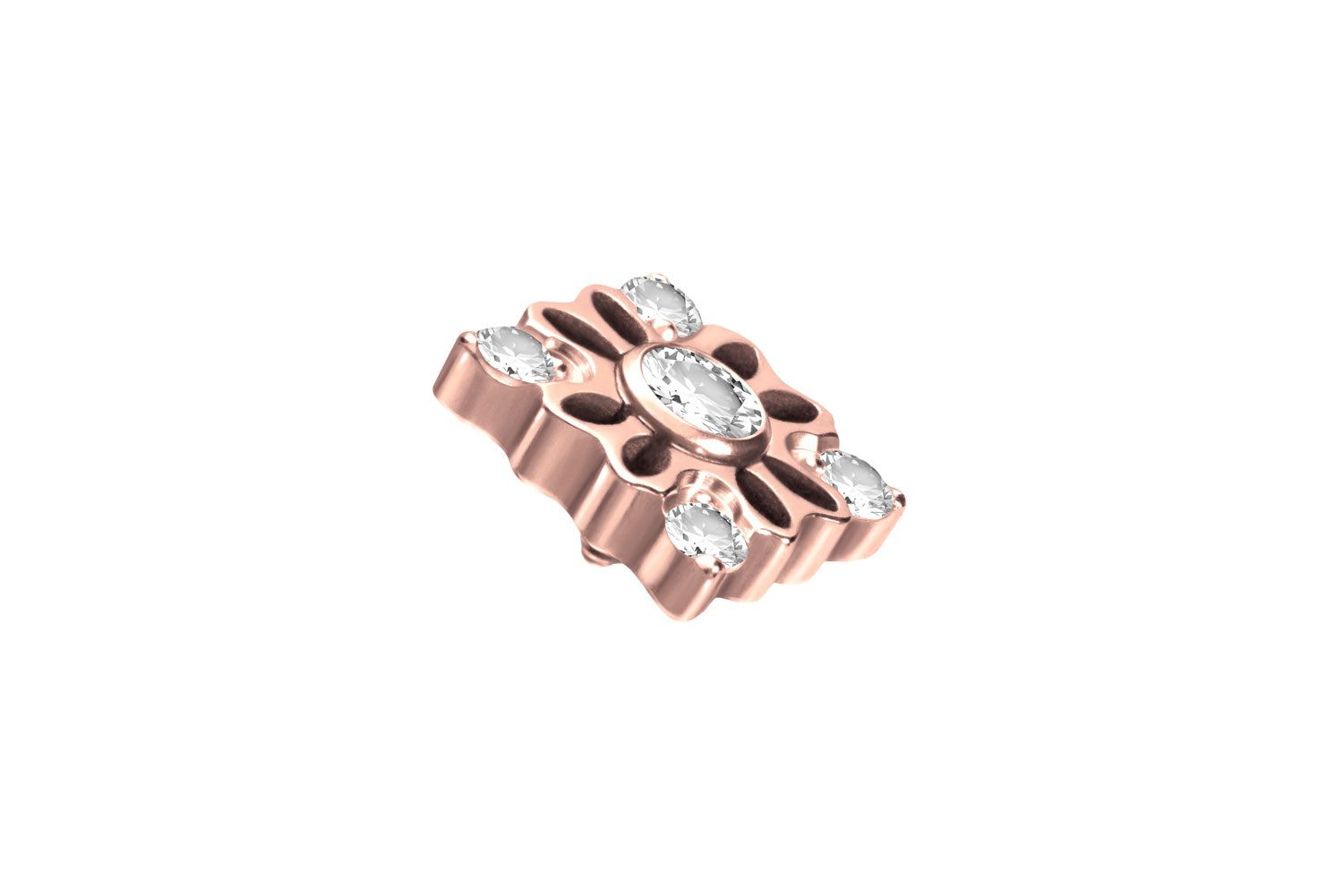 Dieser zeitlos schöne Schraubaufsatz in Form einer Blume, die zusätzlich mit funkelnden Kristallen besetzt ist, wurde speziell für unsere Innengewinde-Piercings entwickelt und besteht aus hochwertigem Titan, das sich unter anderem durch gute Hautverträglichkeit und hohe Beständigkeit auszeichnet. Ebenfalls zu seinen spezifischen Materialeigenschaften gehört Farbechtheit, die sowohl bei der silberfarbenen als auch bei der schwarzen, gold- und roségoldfarbenen Варианты mit PVD-Beschichtung gewährleistet wird. Das 0,9 mm starke Außengewinde des Aufsatzes ist mit all unseren Produkten, die über ein solches Innengewinde verfügen, kompatibel, sodass sich vielfältige Kombinationsmöglichkeiten ergeben.