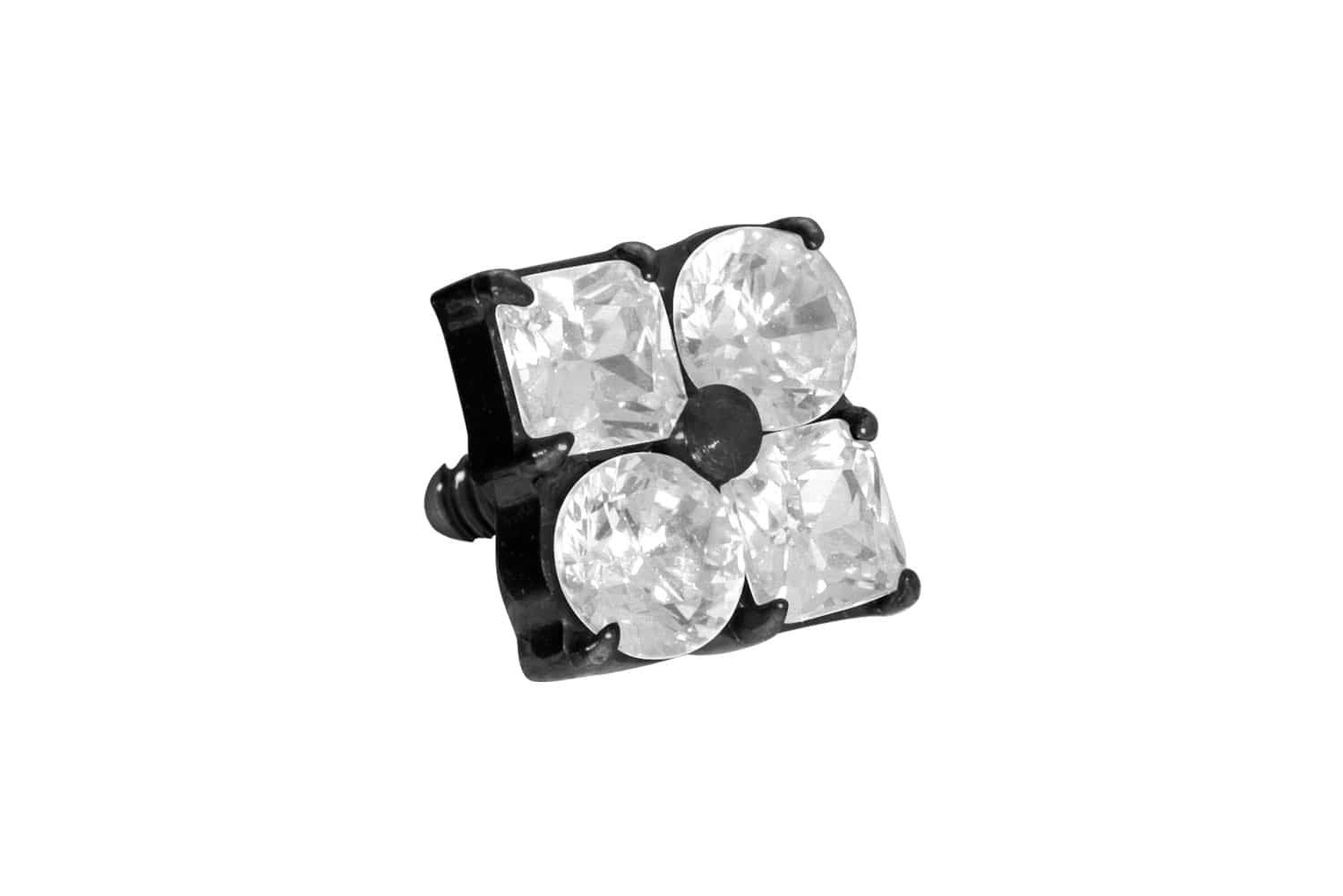 Dieser zeitlos schöne Schraubaufsatz in Form einer Blume mit funkelnden Kristallen wurde speziell für unsere Innengewinde-Piercings entwickelt und besteht aus hochwertigem Titan, das sich unter anderem durch gute Hautverträglichkeit und hohe Beständigkeit auszeichnet. Ebenfalls zu seinen spezifischen Materialeigenschaften gehört Farbechtheit, die sowohl bei der silberfarbenen als auch bei der schwarzen, gold- und roségoldfarbenen Варианты mit PVD-Beschichtung gewährleistet wird. Das 0,9 mm starke Außengewinde der Schraubdisc ist mit all unseren Produkten, die über ein solches Innengewinde verfügen, kompatibel, sodass sich vielfältige Kombinationsmöglichkeiten ergeben.