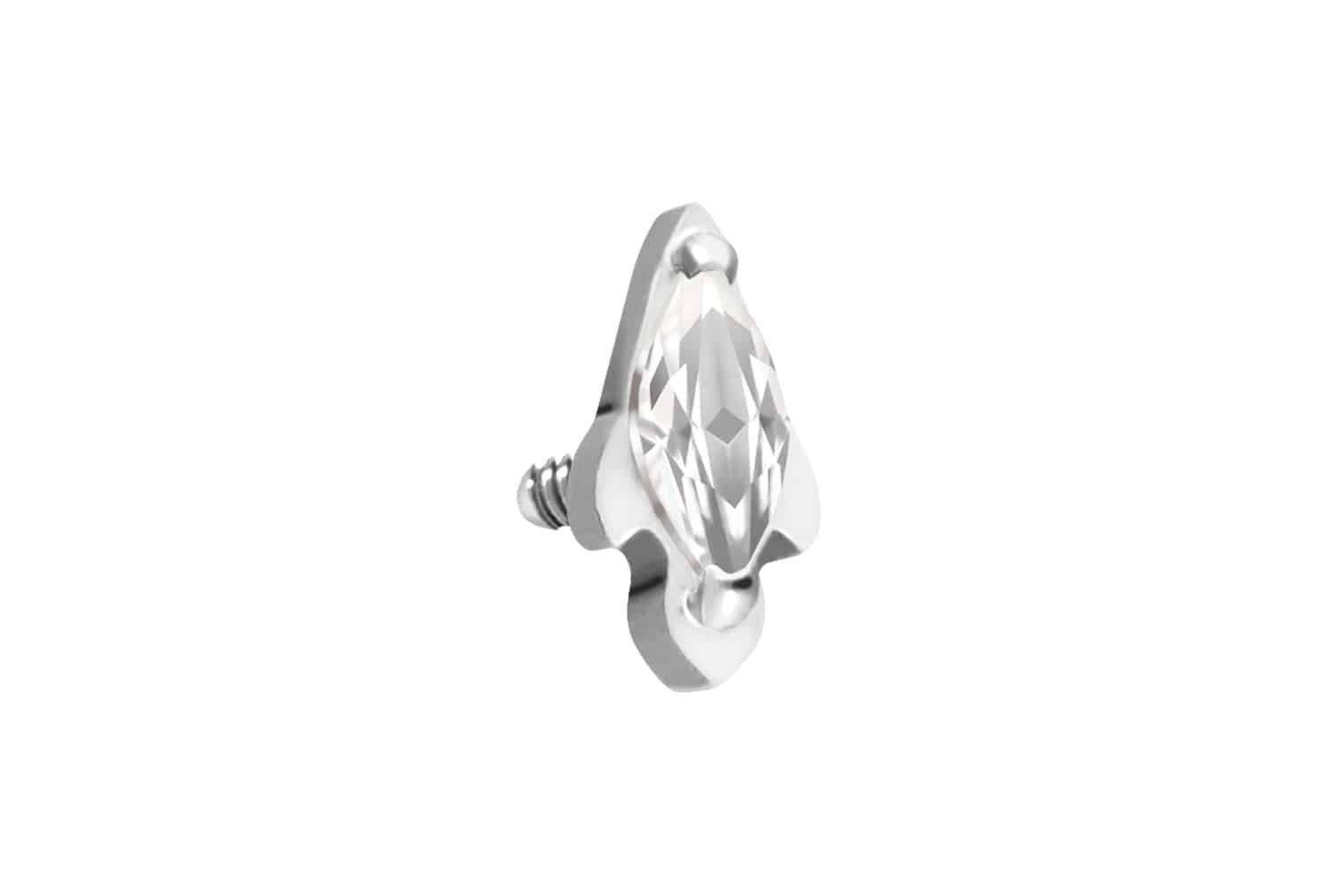 Dieser zeitlos schöne Schraubaufsatz in Form einer Rakete mit einem funkelnden Kristall wurde speziell für unsere Innengewinde-Piercings entwickelt und besteht aus hochwertigem Titan, das sich unter anderem durch gute Hautverträglichkeit und hohe Beständigkeit auszeichnet. Ebenfalls zu seinen spezifischen Materialeigenschaften gehört Farbechtheit, die sowohl bei der silberfarbenen als auch bei der schwarzen, gold- und roségoldfarbenen Варианты mit PVD-Beschichtung gewährleistet wird. Das 0,9 mm starke Außengewinde des Schraubaufsatzes ist mit all unseren Produkten, die über ein solches Innengewinde verfügen, kompatibel, sodass sich vielfältige Kombinationsmöglichkeiten ergeben.