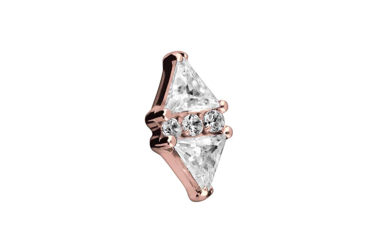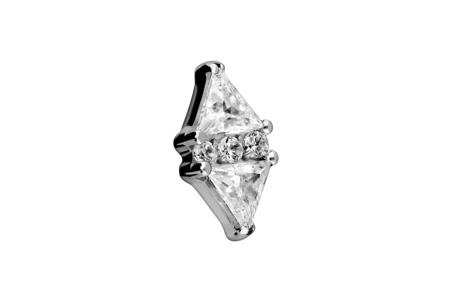 Dieser zeitlos schöne Schraubaufsatz in Form einer funkelnden Kristallraute wurde speziell für unsere Innengewinde-Piercings entwickelt und besteht aus hochwertigem Titan, das sich unter anderem durch gute Hautverträglichkeit und hohe Beständigkeit auszeichnet. Ebenfalls zu seinen spezifischen Materialeigenschaften gehört Farbechtheit, die sowohl bei der silberfarbenen als auch bei der schwarzen, gold- und roségoldfarbenen Варианты mit PVD-Beschichtung gewährleistet wird. Das 0,9 mm starke Außengewinde des Aufsatzes ist mit all unseren Produkten, die über ein solches Innengewinde verfügen, kompatibel, sodass sich vielfältige Kombinationsmöglichkeiten ergeben.