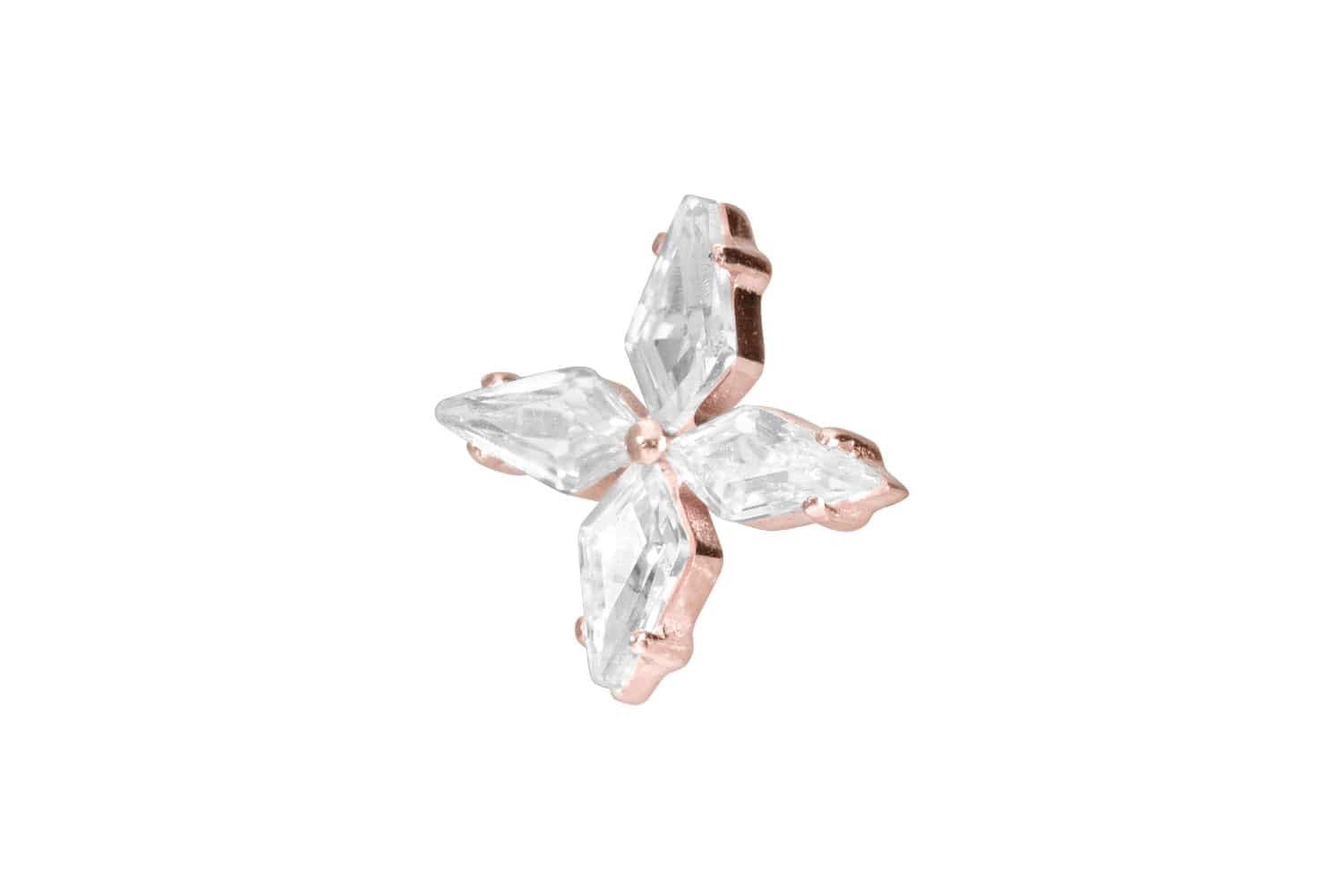 Dieser zeitlos schöne Schraubaufsatz in Form eines funkelnden Kristallsterns wurde speziell für unsere Innengewinde-Piercings entwickelt und besteht aus hochwertigem Titan, das sich unter anderem durch gute Hautverträglichkeit und hohe Beständigkeit auszeichnet. Ebenfalls zu seinen spezifischen Materialeigenschaften gehört Farbechtheit, die sowohl bei der silberfarbenen als auch bei der schwarzen, gold- und roségoldfarbenen Варианты mit PVD-Beschichtung gewährleistet wird. Das 0,9 mm starke Außengewinde des Aufsatzes ist mit all unseren Produkten, die über ein solches Innengewinde verfügen, kompatibel, sodass sich vielfältige Kombinationsmöglichkeiten ergeben.