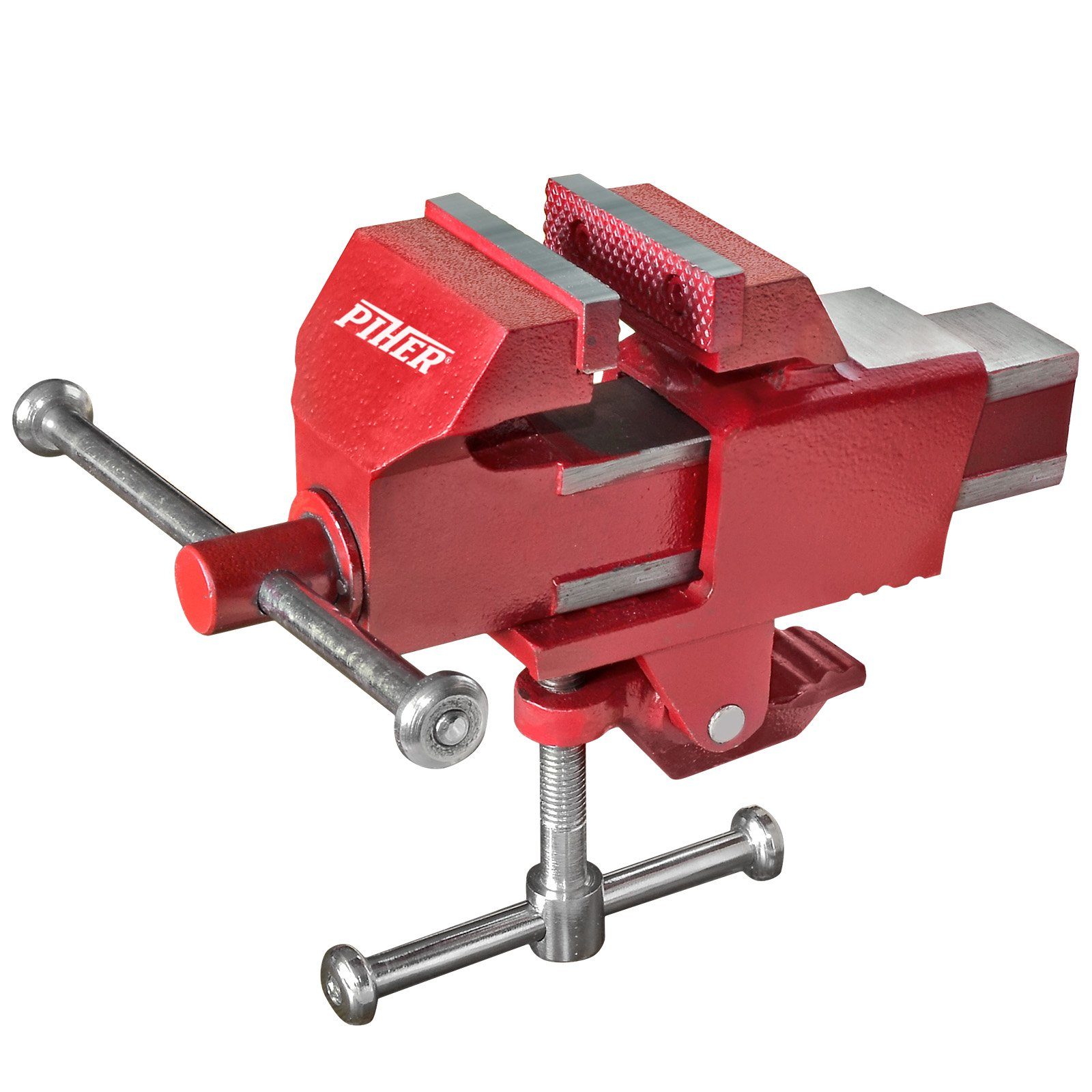 Hochwertiger tragbarer Piher Schraubstock aus C-40 geschmiedetem Stahl mit einer Härte von 45-51 HRC. Der Schraubstock verfügt über eine Vierkantführung für einen festen Sitz Ihres Werkstücks und austauschbare Spannbacken, die Ihnen das rutschfeste Einspannen Ihrer Применитьungsgegenstände ermöglicht. Das Spanngerät lässt sich mit dem Stab in Kombination mit der Spindel öffnen und schließen. Mithilfe der Spindel können Sie die Klemmbacken optimal und präzise an die Размер des Werkstücks anpassen. Ausgestattet ist der unzerbrechliche Piher Schraubstock 55007 weiterhin mit einem nützlichem Amboss neben den Schraubstock-Klemmplatten. Mit diesem können Sie das zu fertigende Teil noch mit dem Hammer bearbeiten, ohne die Platten zu beschädigen. Der kompakte und gestählte Schraubstock ist aufgrund seiner geringen Размер von (LxBxH) 230 x 65 x 150 mm ideal in kleinen Werkstätten und Fahrzeugen einsetzbar, da er nicht viel Platz einnimmt.