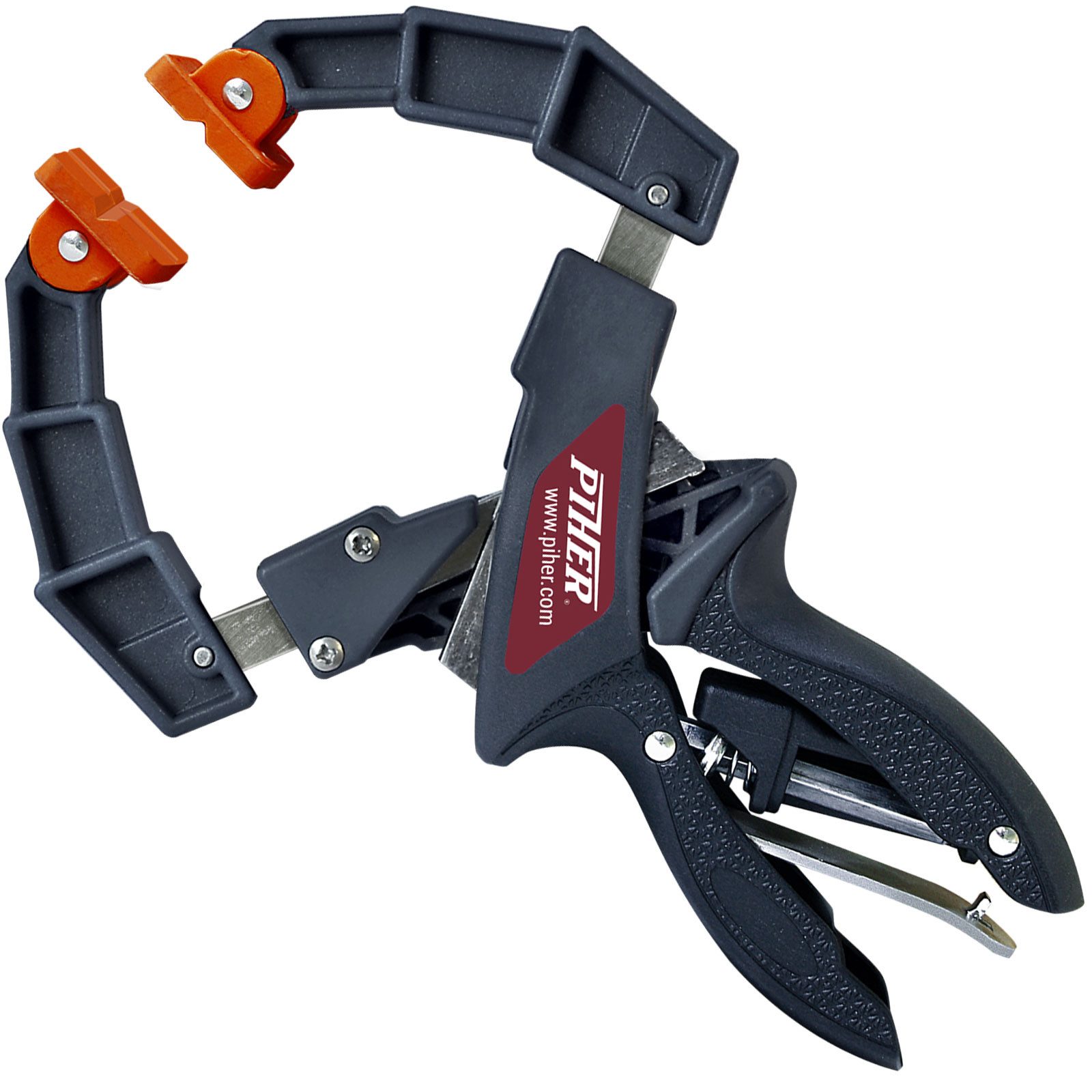 Piher ausziehbare Spannzange für eine schnelle Fixierung von Werkstücken z.B. bei Arbeiten wie: Verleimen, Sägen, Montieren, Bohren. Die Klemm-Zange besteht aus Glasfaser und Nylon und kann fein justiert und einfach mit nur einem Finger gelöst werden. Weiche Gummiauflagen von 2 x 2 cm schonen das Werkstück. Idealerweise lassen sich die Spannbacken der Zwinge in verschiedene Winkel einstellen und hinterlassen keine Abdrücke. Der Handgriff der Klemme ist ergonomisch geformt und verfügt über eine Anti-Rutsch-Funktion. Das Material der Griffe ist aus PE ohne Zugaben von Ölen gefertigt.