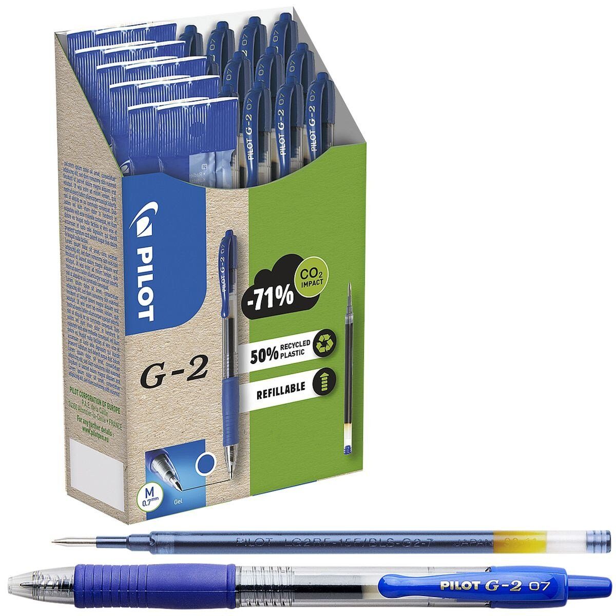 12er-Pack Gelschreiber »G2-07« inkl. 12 Ersatzminen, Strichstärke: 0,4 mm (M), Kugeldurchmesser: 0,7 mm, Mechanik: Druckmechanik, Art der Tinte: Gelpaste auf Wasserbasis, weichschreibend, Umweltaspekt: aus 50% recycelten Materialien, nachfüllbar, Schreibfarbe = Gehäusefarbe, Material Schreibspitze: Edelstahl mit Wolfram-Karbid-Kugel, Material Gehäuse: Kunststoff, Inhalt pro Pack: 12 Gelschreiber inkl. 12 Ersatzminen
