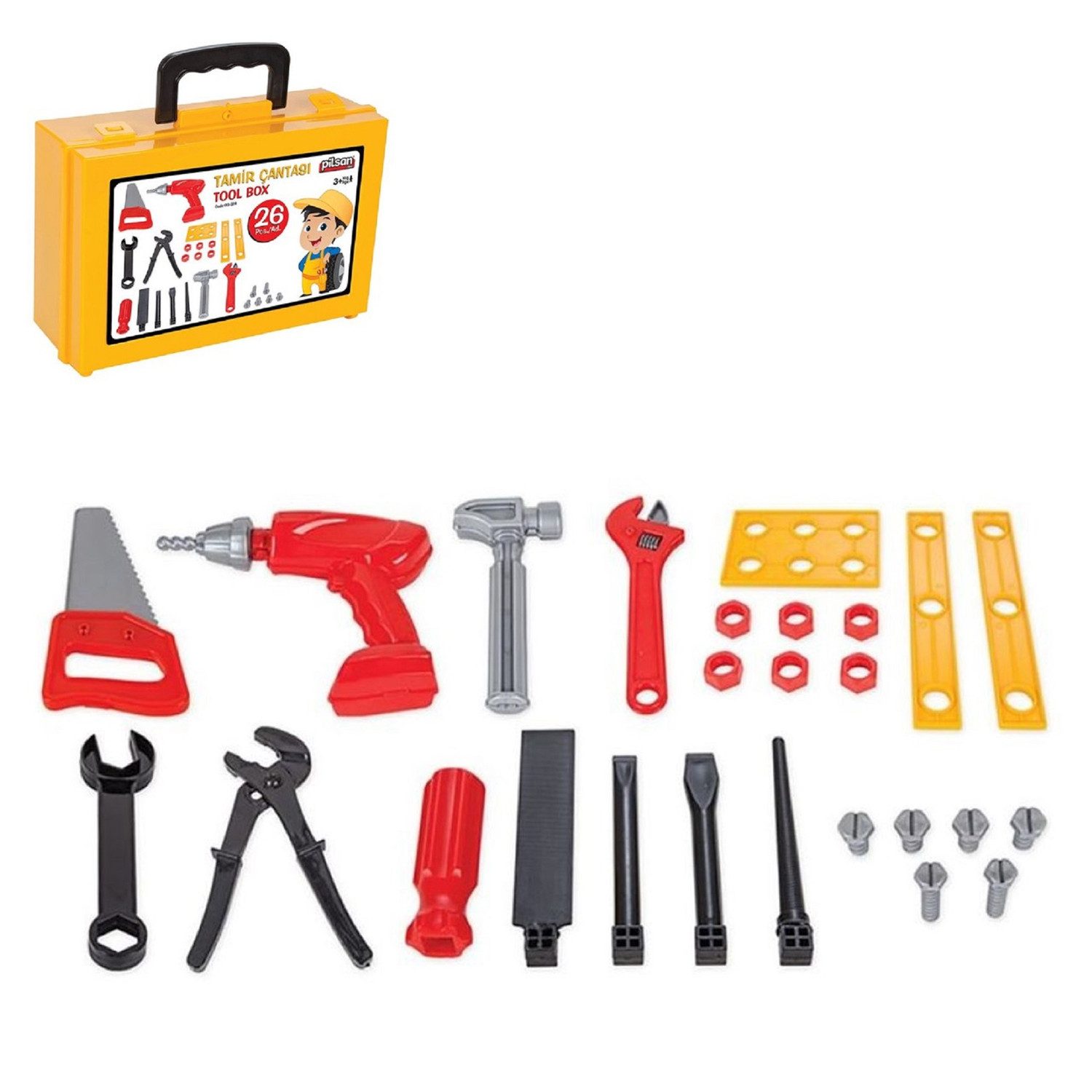 Впередe Informationen Перейти к товару Pilsan Kinderwerkzeugkoffer 03314 mit 26-teiligem Kinderwerkzeug ab 3 Jahre: