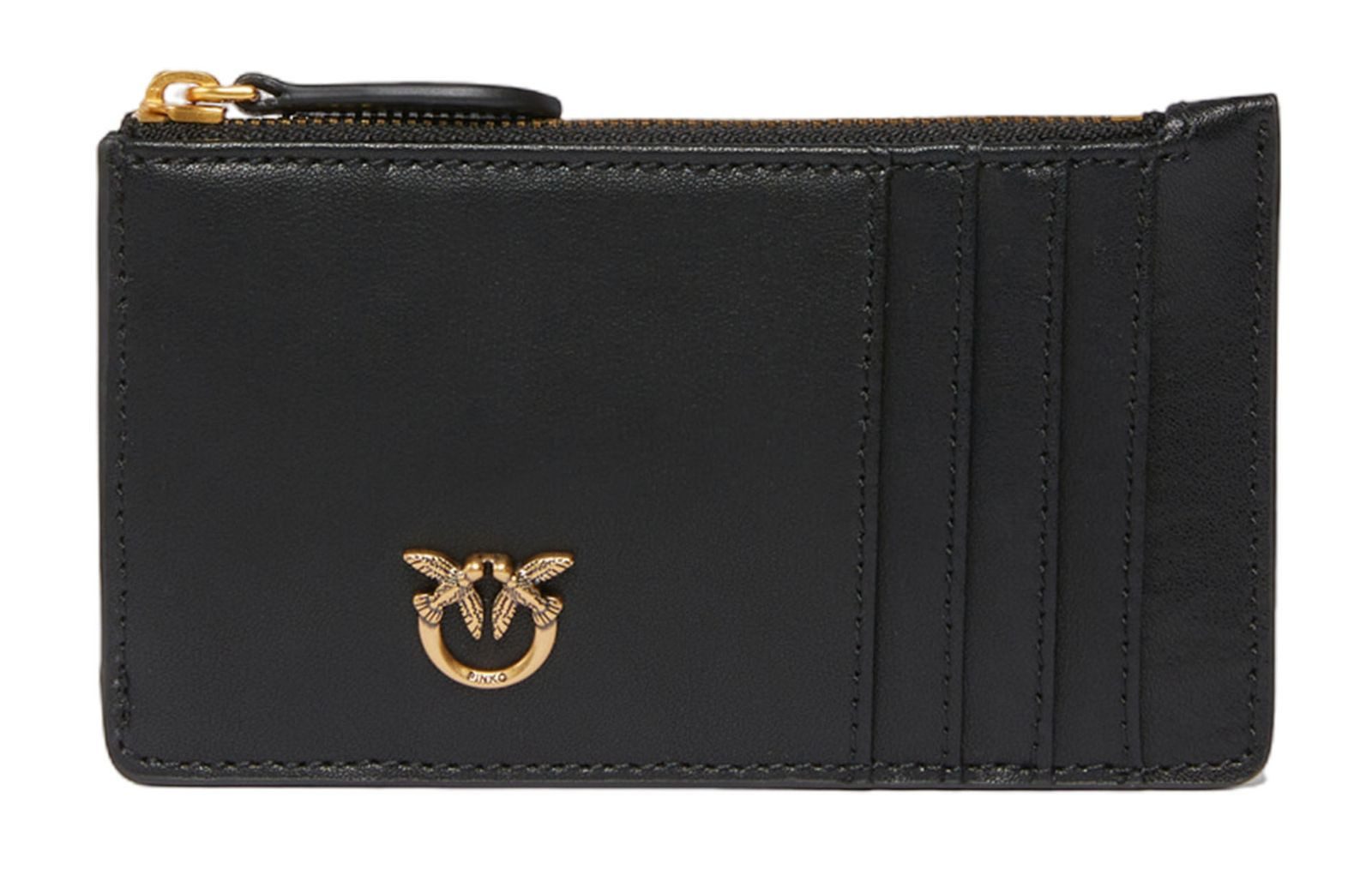 Mit diesem PINKO Airone Cardholder haben Sie ein modernes und praktisches Highlight gefunden. In den Kartenfächern können Sie Ihre 4 wichtigsten Karten geordnet verstauen und dank des handlichen Formats passt es in jede Tasche. Das glatte Leder und die goldfarben Akzente verleihen dem Cardholder nicht nur eine interessante, sondern auch eine modern elegante Optik und im zusätzlichen Zipperfach finden Ihr Kleingeld oder Belege problemlos Platz. Egal ob an der Kasse, an der Bar oder im Restaurant, Sie sind der neue Blickfang mit dem PINKO Airone Cardholder! Ein zusätzliches Gadget dieser Tasche: Aktivieren Sie Ihren PINKO Kartenhalter, indem Sie Ihr Smartphone an die Love Birds-Stickerei auf der Rückseite halten, um die Echtheit Ihres Produkts zu überprüfen und für ein personalisiertes Erlebnis!