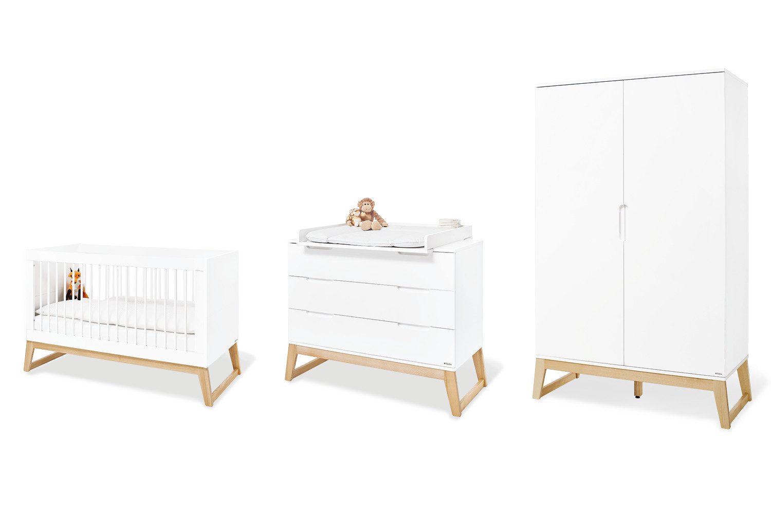 • 3-telig mit Kinderbett, breiter Wickelkommode und 2-türigem Kleiderschrank