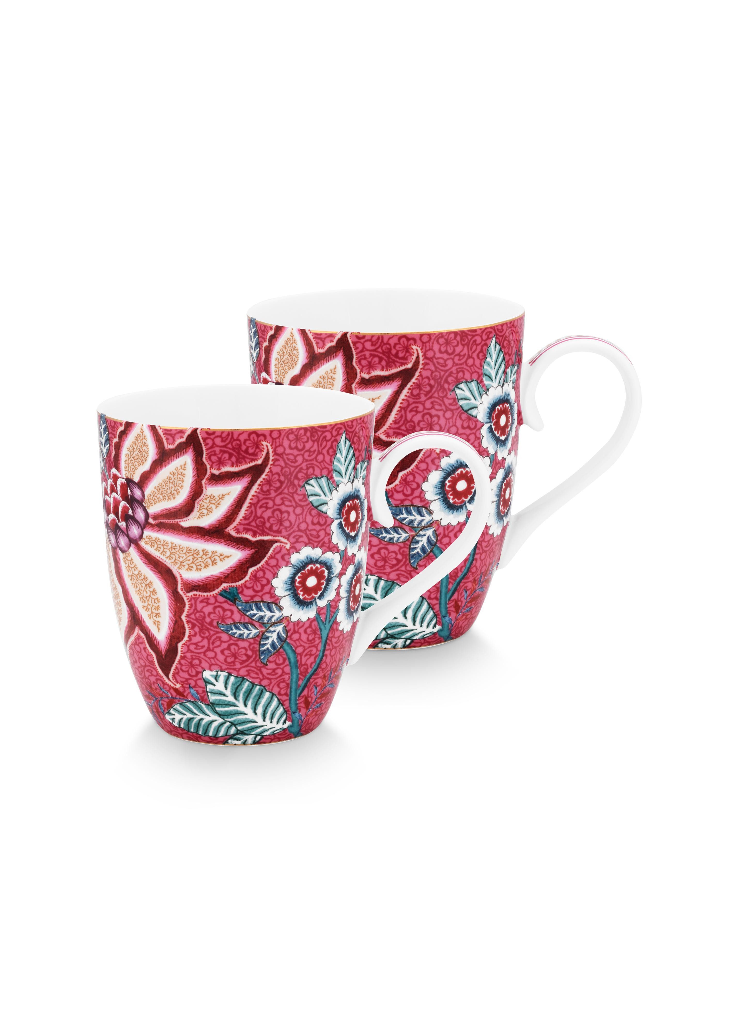 **Pip Studio Tassen-Set 2er, Flower Festival Blau/Dunkelpink, 350ml – Farbenfrohe Eleganz für Ihr Zuhause** Bringen Sie mit dem 2er Set Tassen aus der Flower Festival Kollektion von Pip Studio in Blau und Dunkelpink einen Hauch von Fröhlichkeit und Eleganz auf Ihren Tisch. Mit einem Fassungsvermögen von 350 ml bieten diese Tassen ausreichend Platz für Ihren morgendlichen Kaffee, Tee oder andere Heißgetränke. Die leuchtenden Blumenmuster, die sich kunstvoll über das Porzellan erstrecken, spiegeln die Schönheit und Lebendigkeit eines Sommergartens wider. Diese hochwertigen Tassen sind aus feinem Porzellan gefertigt und überzeugen durch ihre stilvolle Kombination aus kräftigen Farben und detaillierten Designs. Um die leuchtenden Farben und die feinen Details zu schützen, sind die Tassen nicht für die Spülmaschine und Mikrowelle geeignet. Verwöhnen Sie sich selbst oder Ihre Liebsten mit diesen bezaubernden Tassen – ideal für einen Hauch von Luxus im Alltag oder als stilvolles Geschenk. Genießen Sie Ihre Lieblingsgetränke in den farbenfrohen Tassen der Flower Festival Kollektion von Pip Studio!