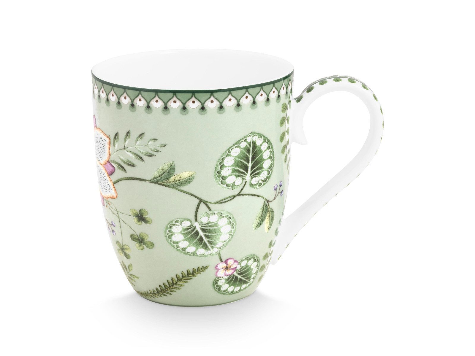 Mit dem PIP STUDIO Lily & Lotus Light Green Becher genießen Sie Ihre Getränke stilvoll und setzen elegante Akzente auf Ihrer Tafel.