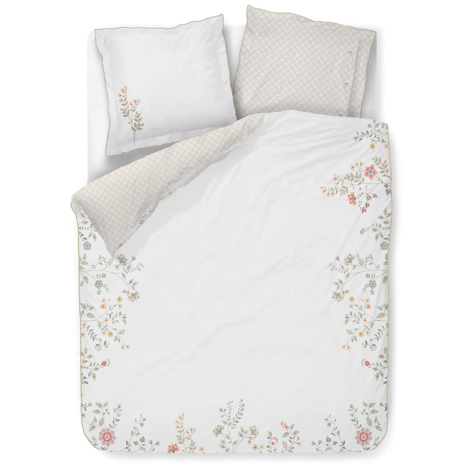 Die Bettwäsche Campo de Flores Off-white von PiP Studio zaubert einen Hauch von Romantik in Ihr Schlafzimmer. Detaillierte Blüten und florale Ornamente fügen sich zu einem wunderschönen Blumenmuster zusammen. Das nur am Rand gestaltete Blätter- und Blumenwerk lässt die Bettgarnitur zu gleich schlicht und romantisch wirken. Die Abseite ist in einem gelben Karo-Muster gestaltet und rundet das Design harmonisch ab. Kuscheln Sie sich in die glatte und anschmiegsame Perkal Oberfläche aus 100 Prozent Baumwolle und genießen Sie einen komfortablen und erholsamen Schlaf. Die Bettwäsche wird in einer exklusiven Geschenkbox geliefert.