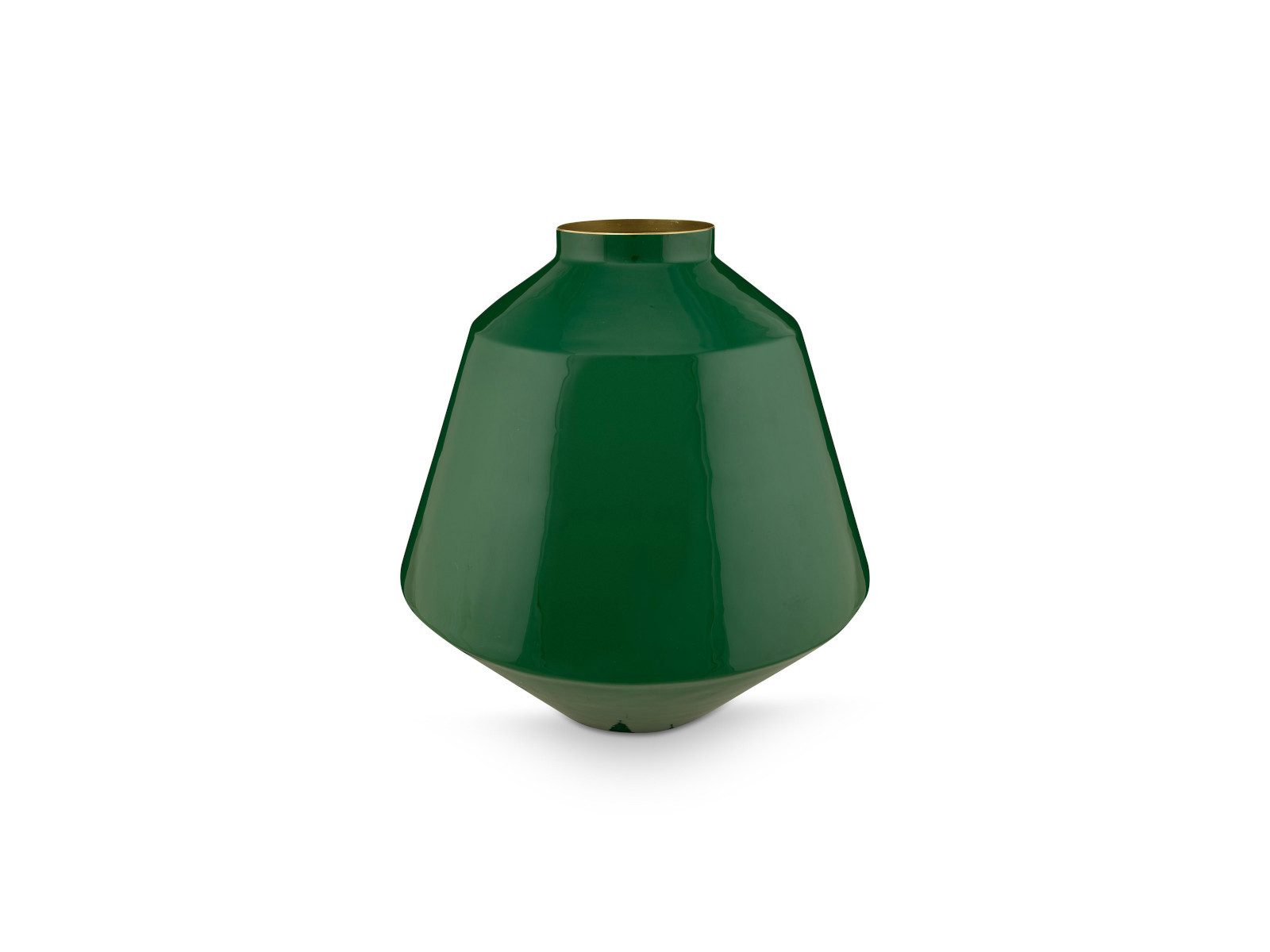 Die PIP STUDIO Vase Metall in Dunkelgrün, mit einer Höhe von 35 cm, ist ein elegantes und markantes Dekorationsstück für Ihr Zuhause. Aus hochwertigem Metall gefertigt, besticht die Vase durch ihre tiefgrüne Farbe, die jedem Raum einen luxuriösen und zugleich zeitlosen Touch verleiht. Ihre großzügige Höhe macht sie ideal für große Blumenarrangements oder als eigenständiges Kunstwerk. Die robuste Bauweise sorgt für Langlebigkeit und eine edle Ausstrahlung. Diese Vase ist perfekt für Tische, Regale oder Vitrinen und setzt stilvolle Akzente, die Ihrem Wohnraum eine besondere Note verleihen.