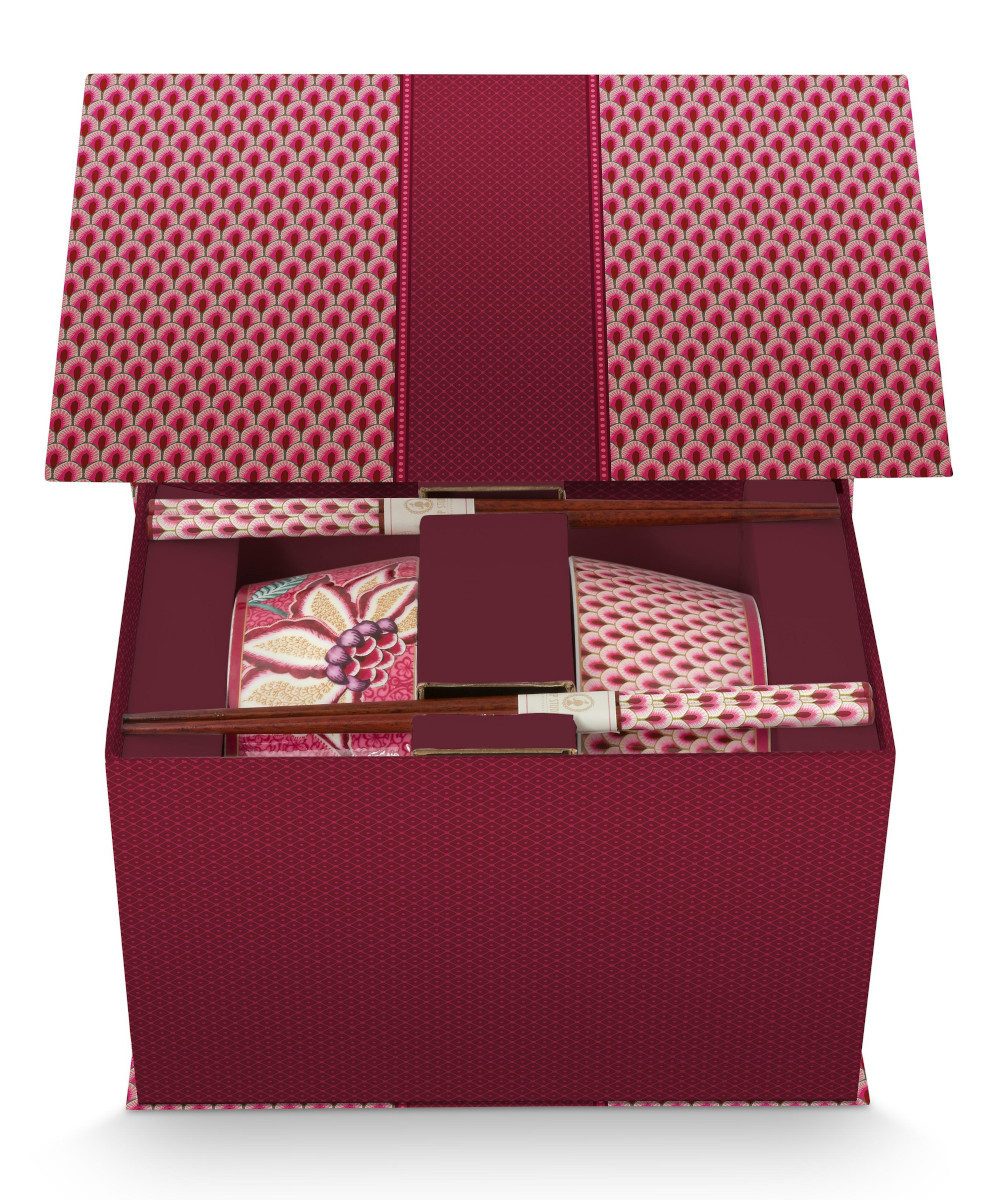 PiP Studio Schale Flower Festival Oriental Geschenkset Schalen und Essstäbchen dark pink, Porcelain, (Bowls), Giftset Bowls 15cm & Chopsticks Oriental Flower Festival Dar