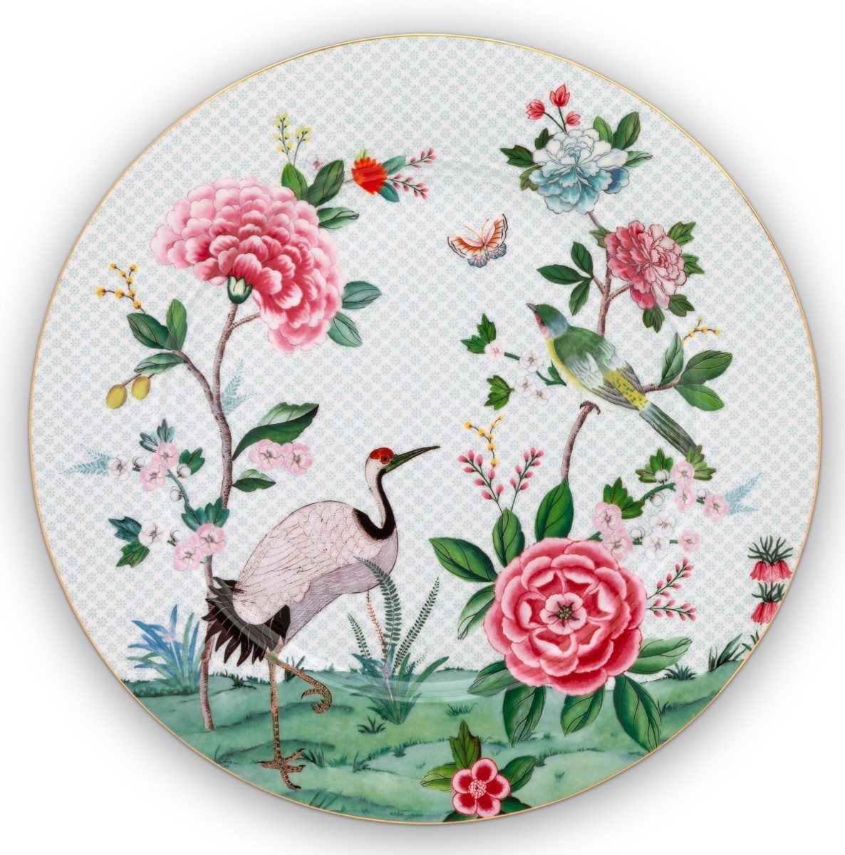 Eleganter Platzteller der Serie Blushing Birds in edlem Weiß