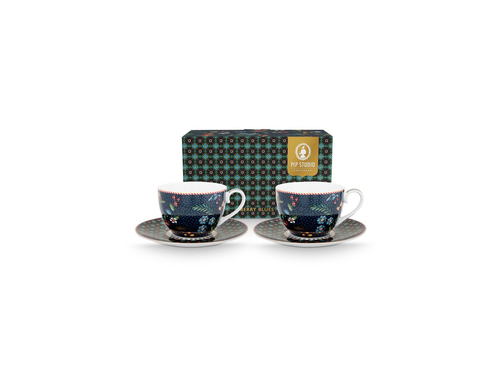 Das PIP STUDIO \Berry Blues\" Kaffeetassen-Set in Blau, je mit 280 ml Fassungsvermögen, vereint Stil und Genuss. Das wunderschöne Blümchenmuster verleiht den Tassen einen charmanten Touch. Hergestellt aus hochwertigem Material sind sie perfekt für Kaffeeliebhaber und bereichern jeden Moment mit stilvoller Eleganz.