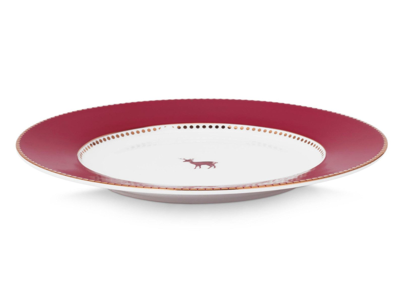 Der Love Birds Teller Dark Red von PIP Studio vereint romantisches Design mit feiner Porzellanqualität. Das verspielte Vogelmotiv in Kombination mit floralen Details und einem dekorativen Rand in Dunkelrot macht diesen Teller zu einem besonderen Blickfang auf jedem gedeckten Tisch.