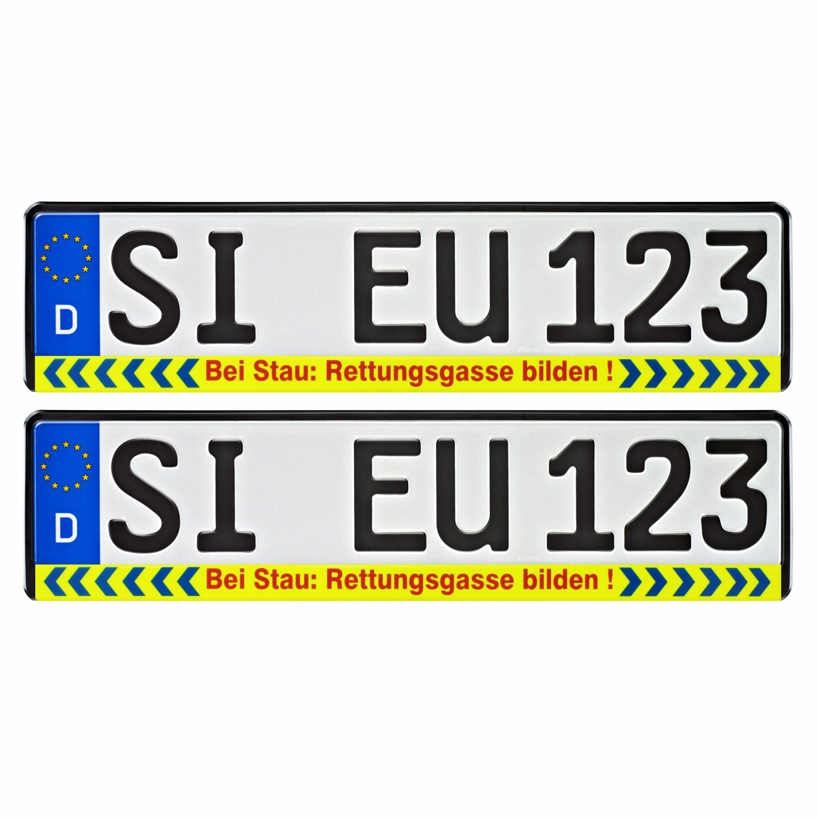 Zwei Stück "Rettungsgasse" Kennzeichenhalter á 525 x 132 x 12 mm; leicht formbar