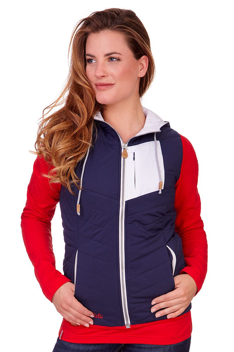 Biburg, die sportlich-stylische Damen Steppweste in Blau/Weiß, ist eine Kreation aus dem Hause Piz Palü und ein wärmender Outdoor-Begleiter im coolen Look. Sie ist wasserabweisend, winddicht, sehr leicht, ultra weich, komprimierbar, hat eine Primaloft-Wattiertung, die ohne großes Volumen angenehm wärmt, und wird zu 70% aus recyceltem Material hergestellt. Sowohl die Vorder- als auch die Rückseite haben leicht v-förmige Steppnähte und die Armausschnitte sowie der Saum sind elastisch in Rot umsäumt. Die dunkelblaue, leicht wattierte Kapuze mit schicker Nahtführung ist innen mit Kontrastfutter in Weiß ausgestattet und vorn gibt es einen kleinen, integrierten Stehkragen. Das geflochtene Rundkordel-Zugband der Kapuze hat geknotete Enden und Marken-Annäher im Leder-Style. Linksseitig vorn an der geschmackvollen Steppweste gibt es eine fesch abgesetzte Brusttasche in Weiß mit einem Reißverschluss längs und dunkelblauem Zipper. Auch die unscheinbaren Seitentaschen verfügen jeweils über einen Reißverschluss, als Kontrast mit dezenten, weißen Zippern. Den Schieber des Frontreißverschlusses mit den silberfarbenen Reißverschlusszähnen und dem weißen Reißverschlussband schmückt ein runder Anhänger im Leder-Stil mit Markenname. Komplettiert wird das Design, das sich prima kombinieren lässt, durch den Marken-Stick in Rot vorn rechts über dem Saum. Bitte beachten Sie bei Размер 48 den Größenzuschlag.