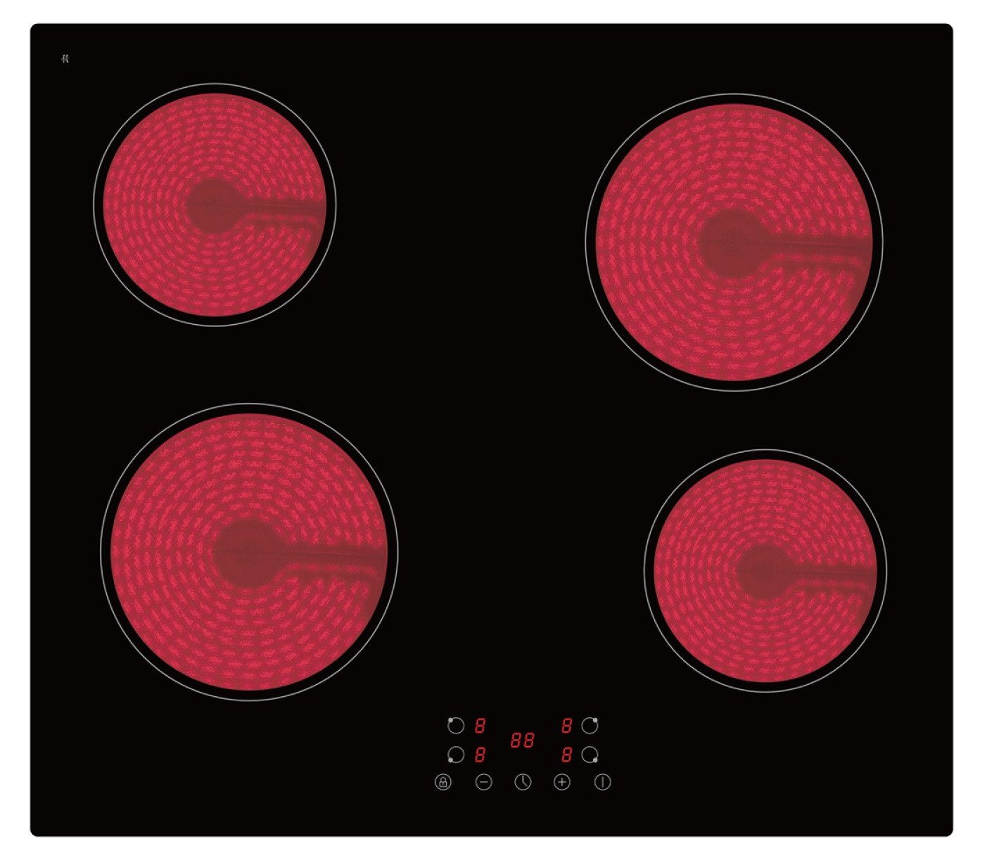 PKM Elektro-Kochfeld 60cm autark KHKF4 G inklusive Anschlusskabel, Mit Kindersicherung, Restwärmeanzeige und Abschaltautomatik