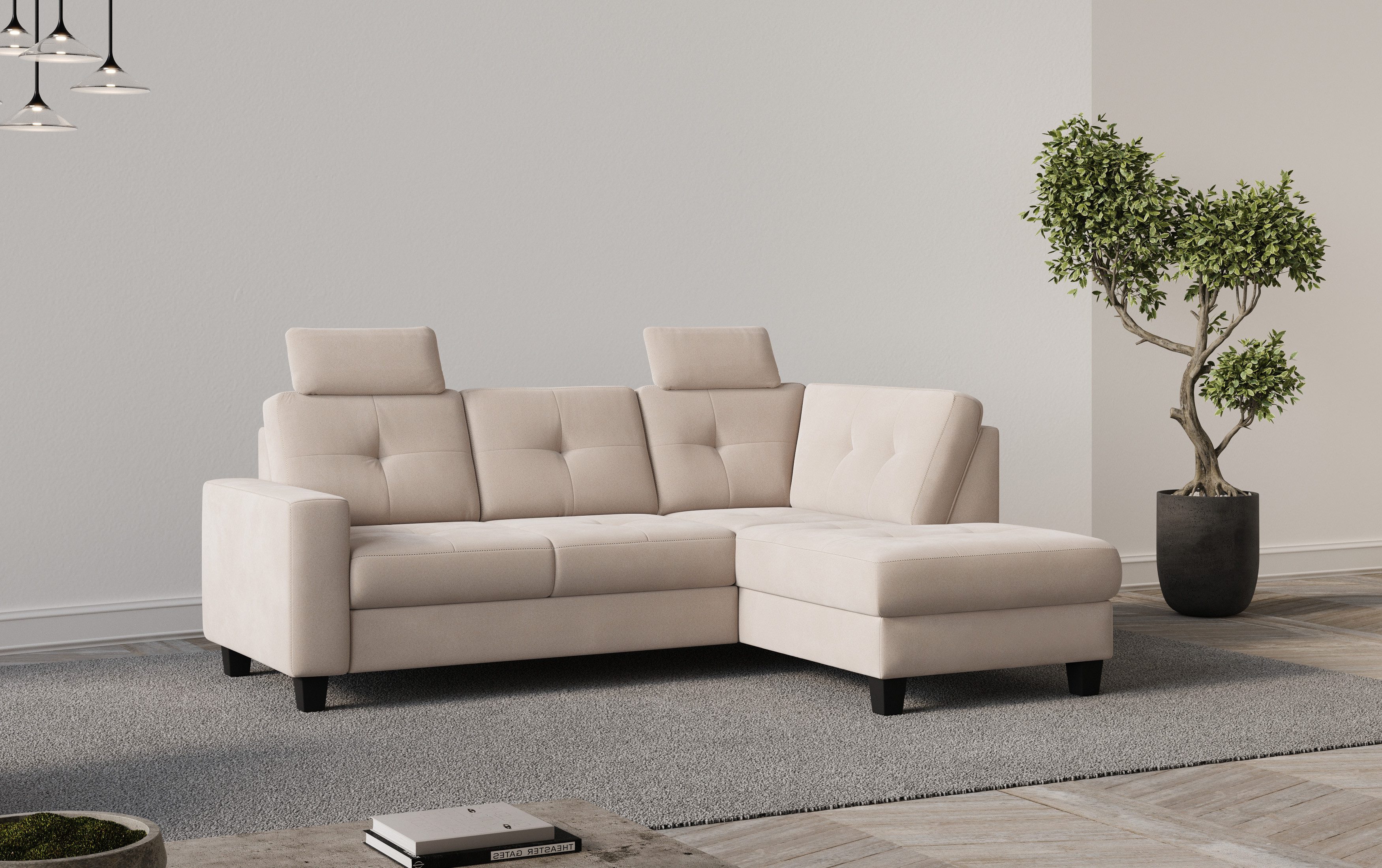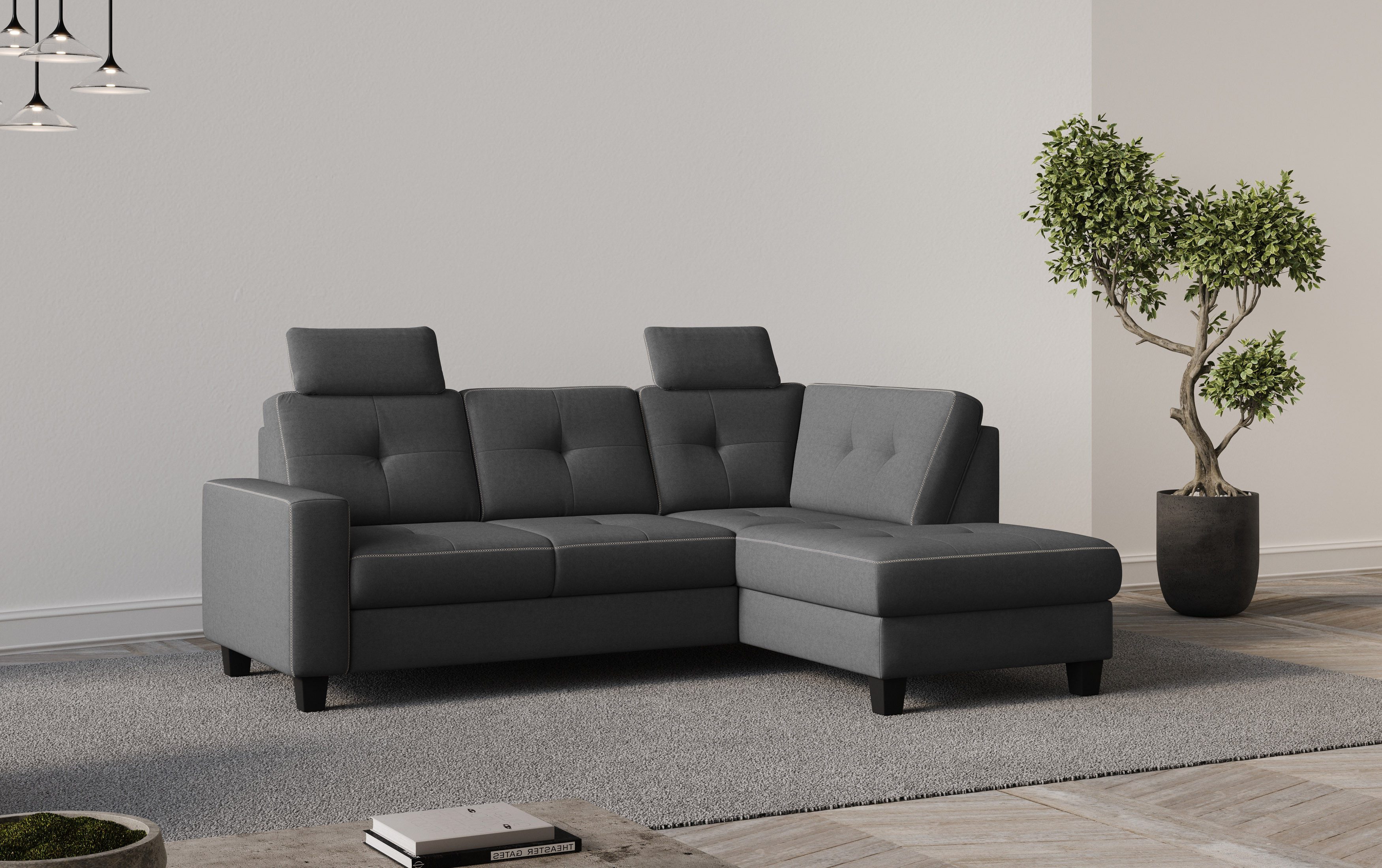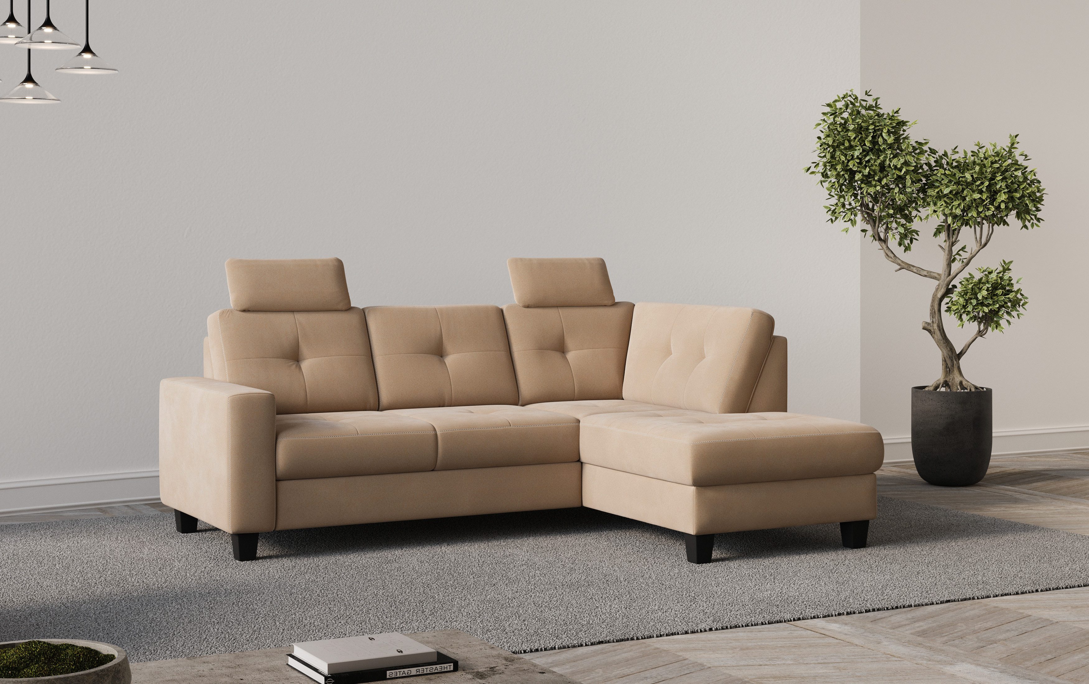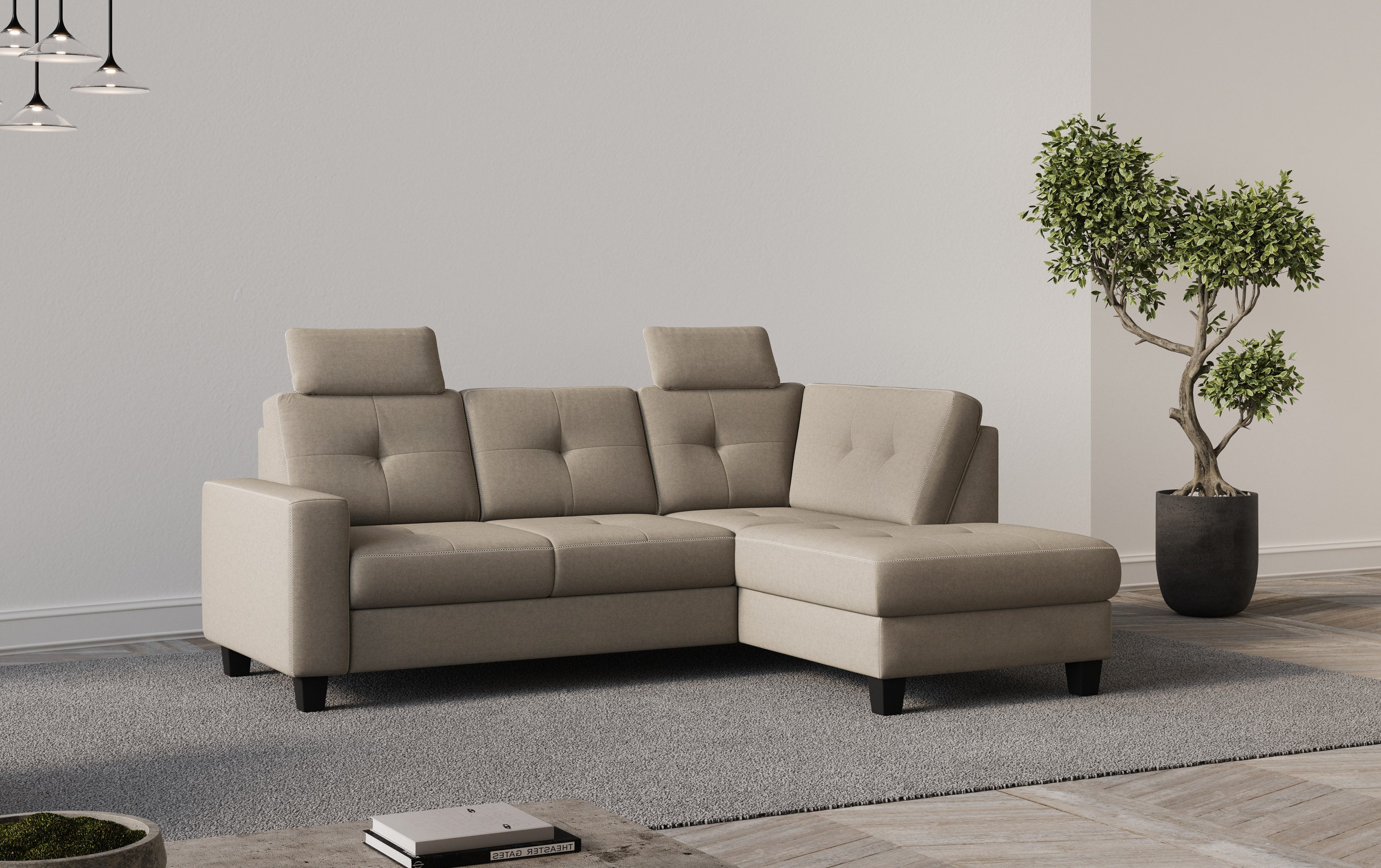 Dieses Ecksofa »Varese« von Places of Style bietet dir dank der Wellenunterfederung hohen Sitzkomfort und Tragfähigkeit. Von vorne betrachtet ist die Ottomane nach rechts ausgerichtet. Die maximale Belastbarkeit pro Sitzplatz liegt bei einem Gewicht von 110 Kilogramm. Aus Holz gefertigt, bestechen die buche schwarzen Füße durch eine unverwechselbare Optik. Dieses Modell wurde von Hand gefertigt.