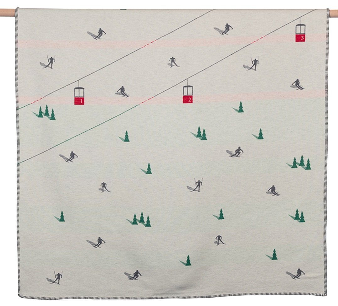 Decke Skipiste Maße: 140 cm x 200 cm Material: 85% Baumwolle, 8% Viskose, 7% Polyacryl Gewicht ca. 1100 gr, mit großem, dekorativem Zwirn Zierstich rundum Kurz geschorene, kompakte Veloursdecke, Jacquard gewebt (Rückseite und Vorderseite gegensätzliche Musterung) Waschbar bei 30° im Wollwaschgang, bleichen nicht erlaubt, nicht im Wäschetrockner trocknen, nicht bügeln Made in Austria