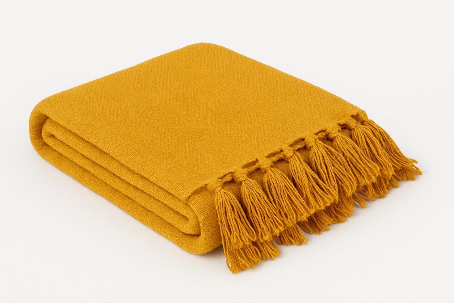 Unser handgefertigtes Plaid in Gelb ist aus 100% Biobaumwolle gefertigt und misst 170x210cm. Das Fischgrätenmuster verleiht diesem Plaid einen zeitlosen und eleganten Look. Die kleinen Fransen an den Enden sorgen für eine zusätzliche dekorative Note und verleihen dem Plaid ein gemütliches Flair. Perfekt zum Einkuscheln auf dem Sofa oder als zusätzliche Schicht auf dem Bett. Dieses Plaid ist nicht nur wunderschön, sondern auch umweltfreundlich hergestellt.