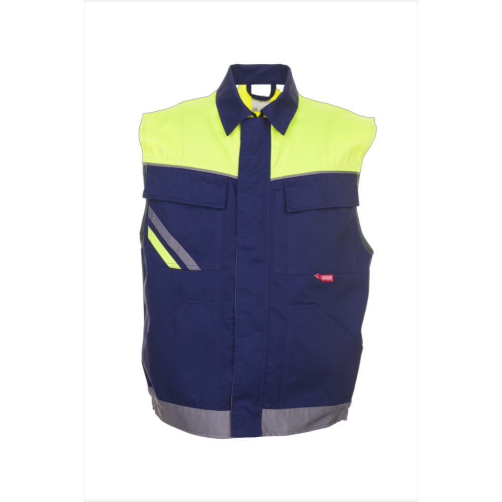 Hauptfarbe: 65 % Polyester, 35 % Baumwolle Diagonal-Köper (ca. 285 g/m²); Kontrastfarbe: warnorange/warngelb 85 % Polyester, 15 % Baumwolle (290 g/m²) |