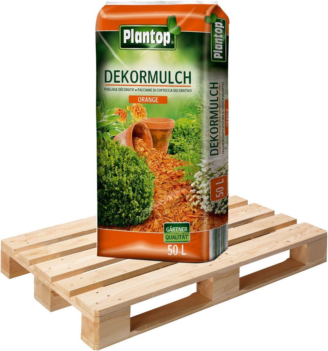 Der Plantop Dekormulch in orange ist ein hochwertiges Dekorationsmaterial aus naturreinem, heimischem und zerkleinertem Nadelholz ohne Rinde. Das Nadelholz ist mit naturverträglichen Endfarben eingefärbt. Das Produkt ist farbstabil, witterungsbeständig, sehr lange haltbar und äußerst attraktiv für Ihre individuelle dekorative Gartengestaltung. Der Plantop Dekormulch speichert Feuchtigkeit und Wärme, verhindert das Austrocknen des Bodens, gewährleistet gute Bodendurchlüftung, unterdrückt den Unkrautwuchs und ist geruchs- und pH-neutral.
