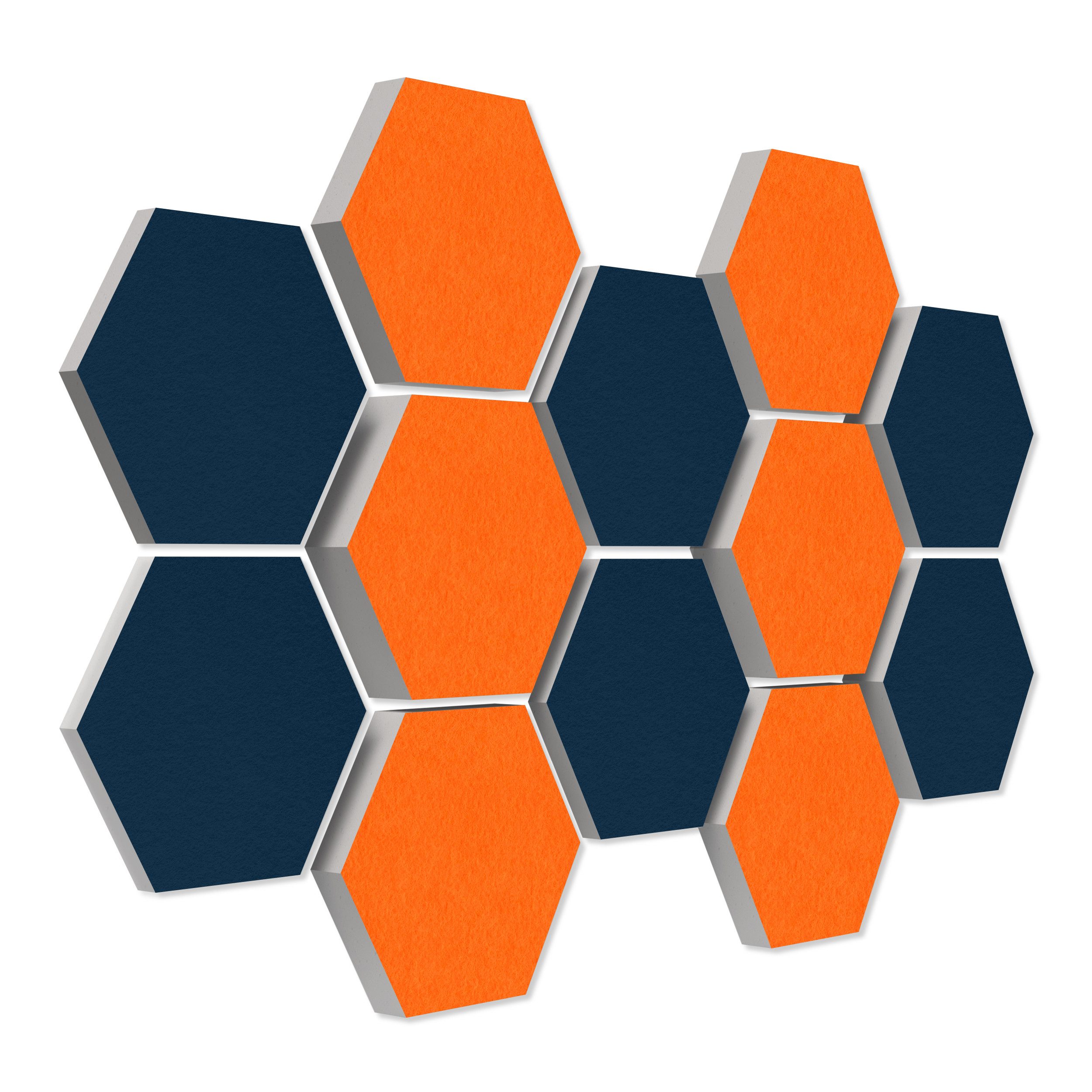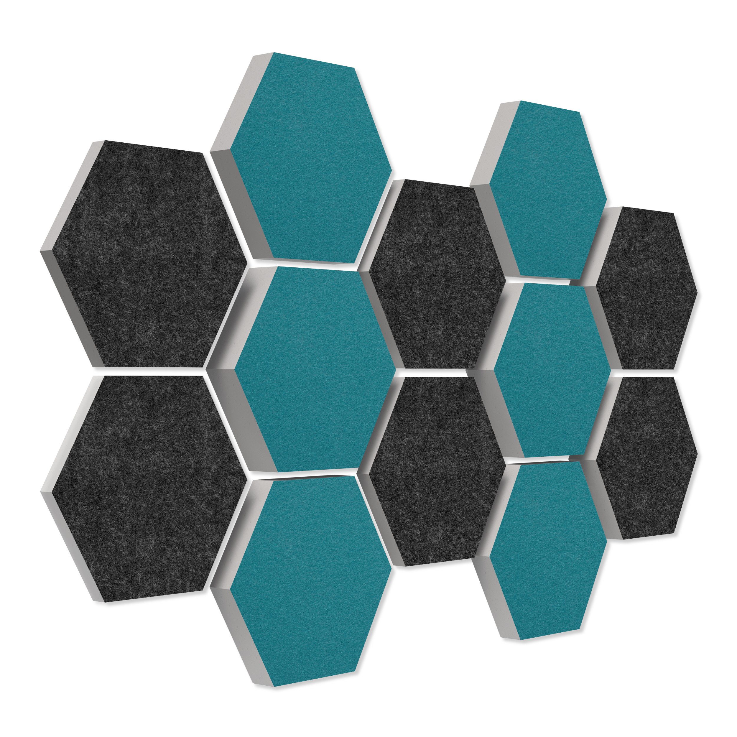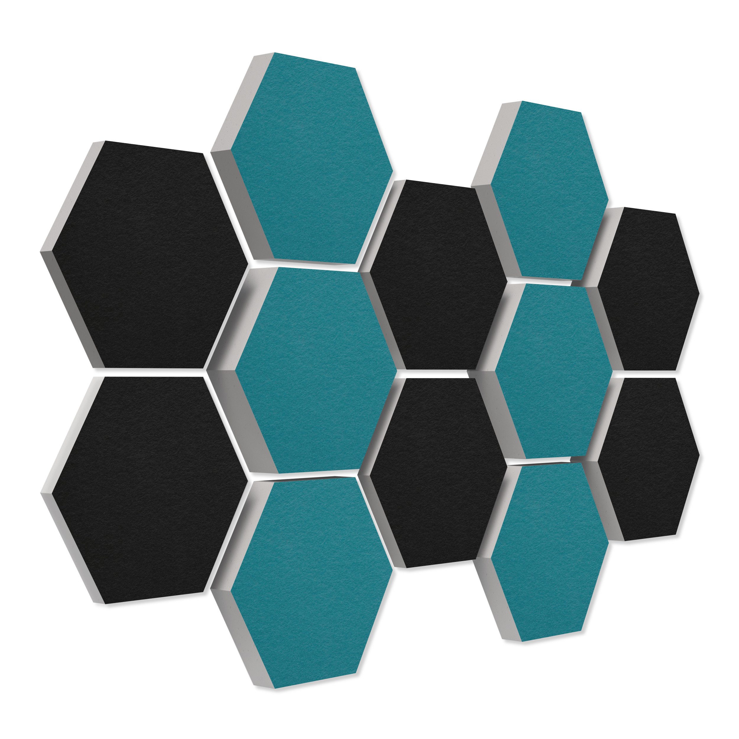 Lieferumfang 12 Akustikelemente Wabenform mit hochwertiger Akustikfilz-Oberfläche: