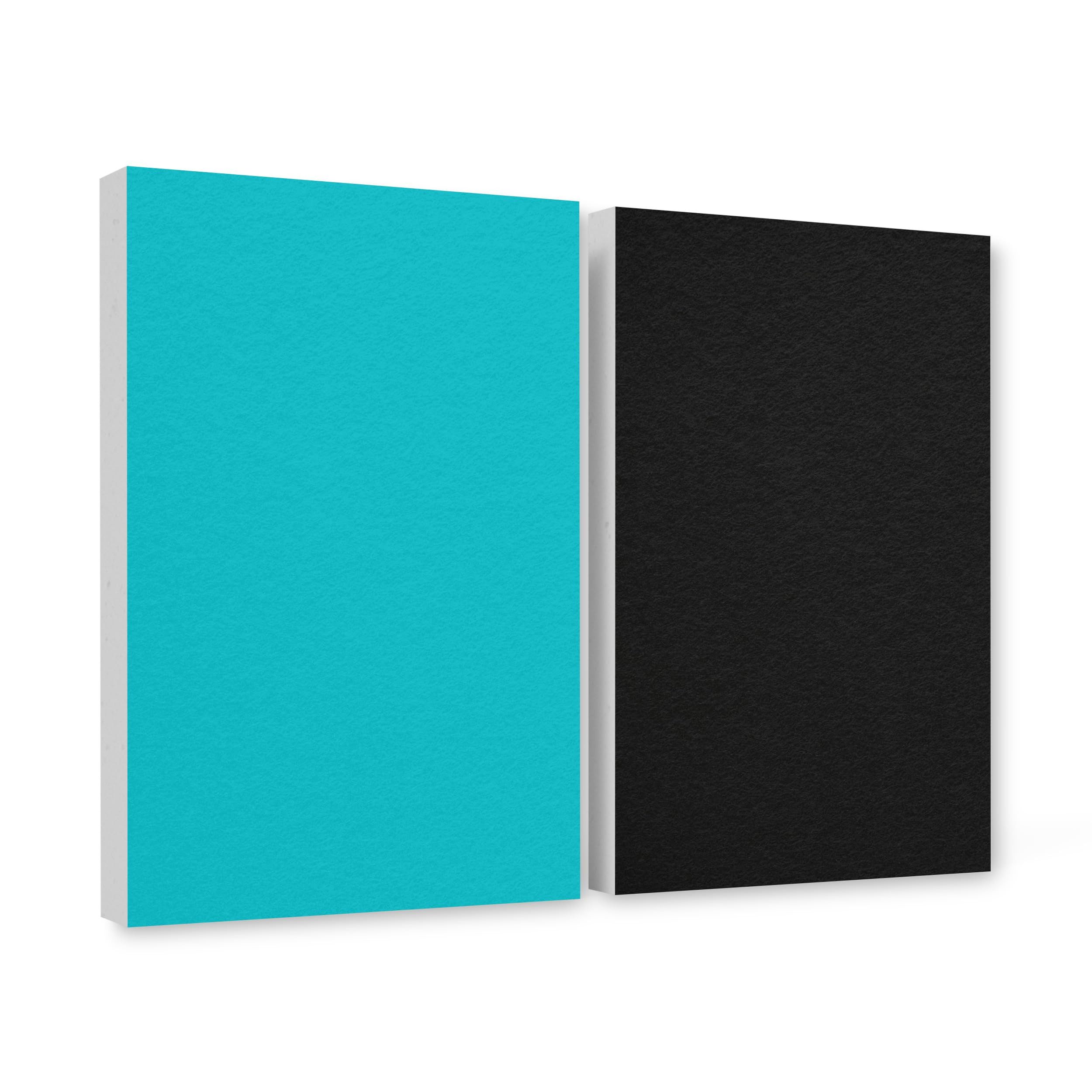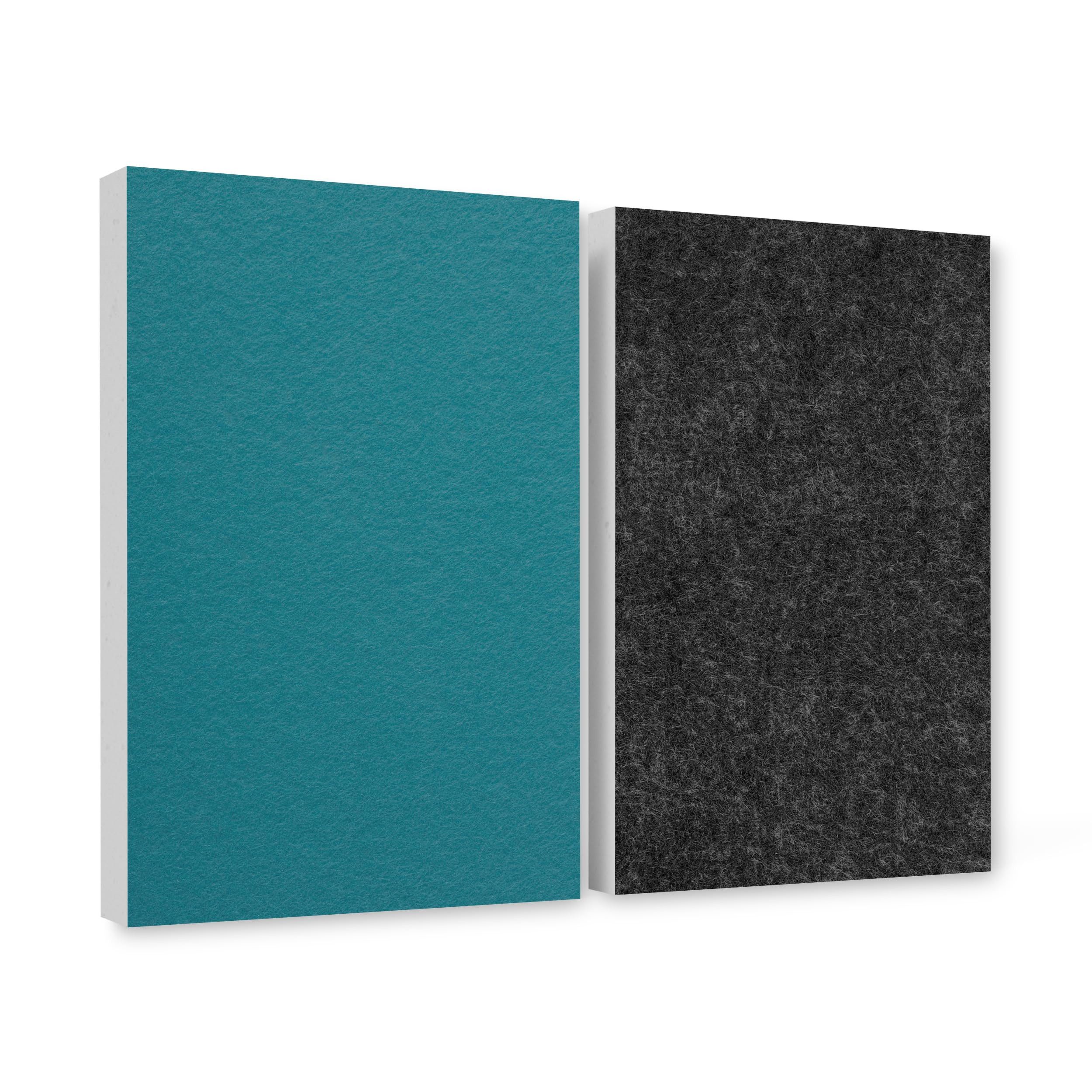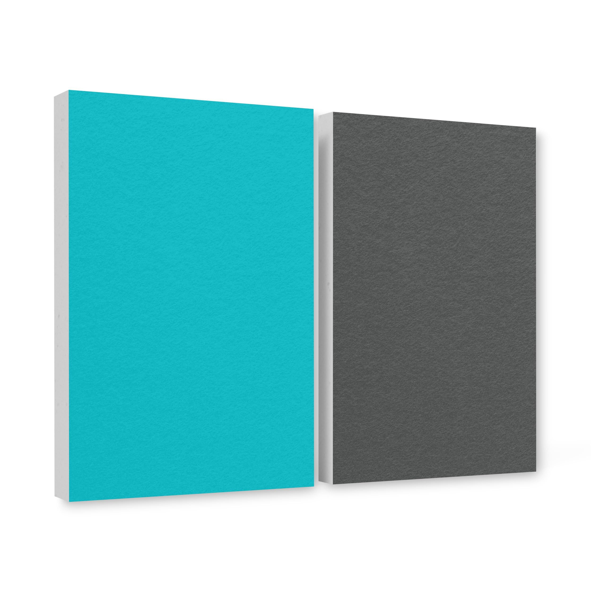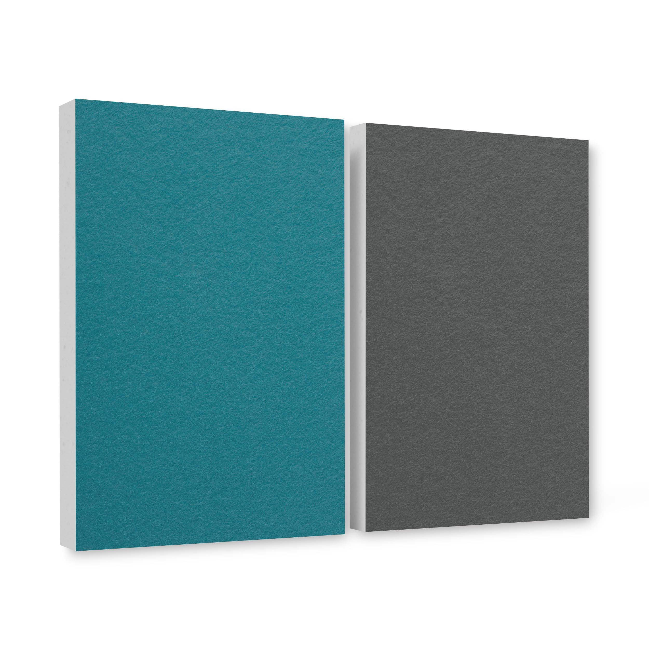 2 Stück je 82,5cm x 50cm x 5cm Stärke, Oberseite farbiger Akustikfilz.