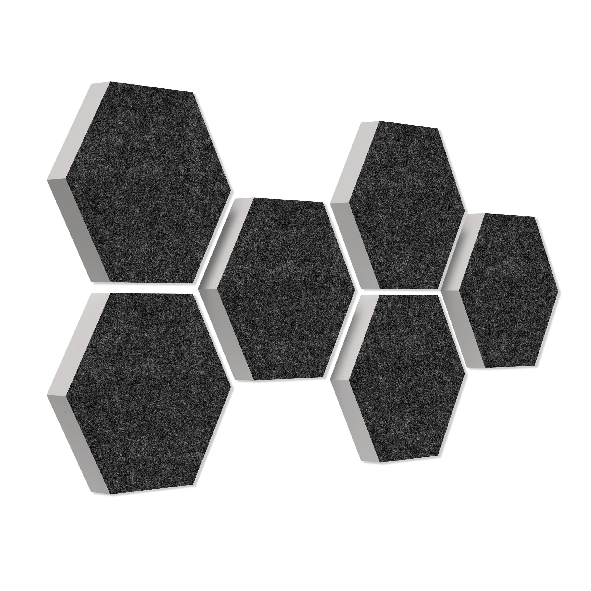 Lieferumfang 6 Akustikelemente Wabenform mit hochwertiger Akustikfilz-Oberfläche: