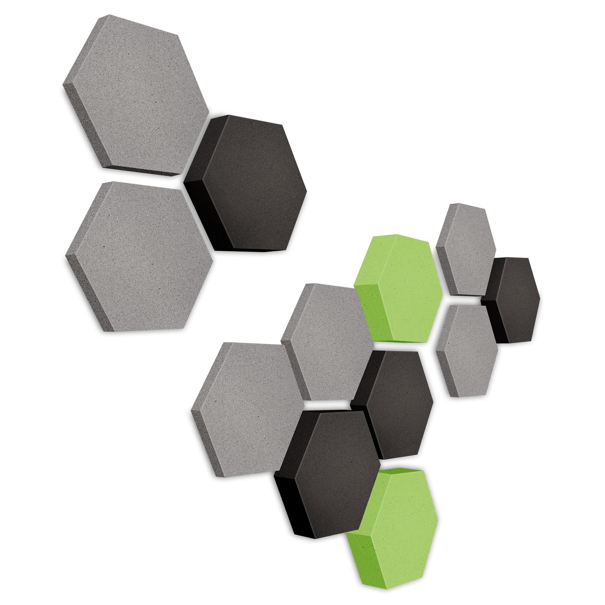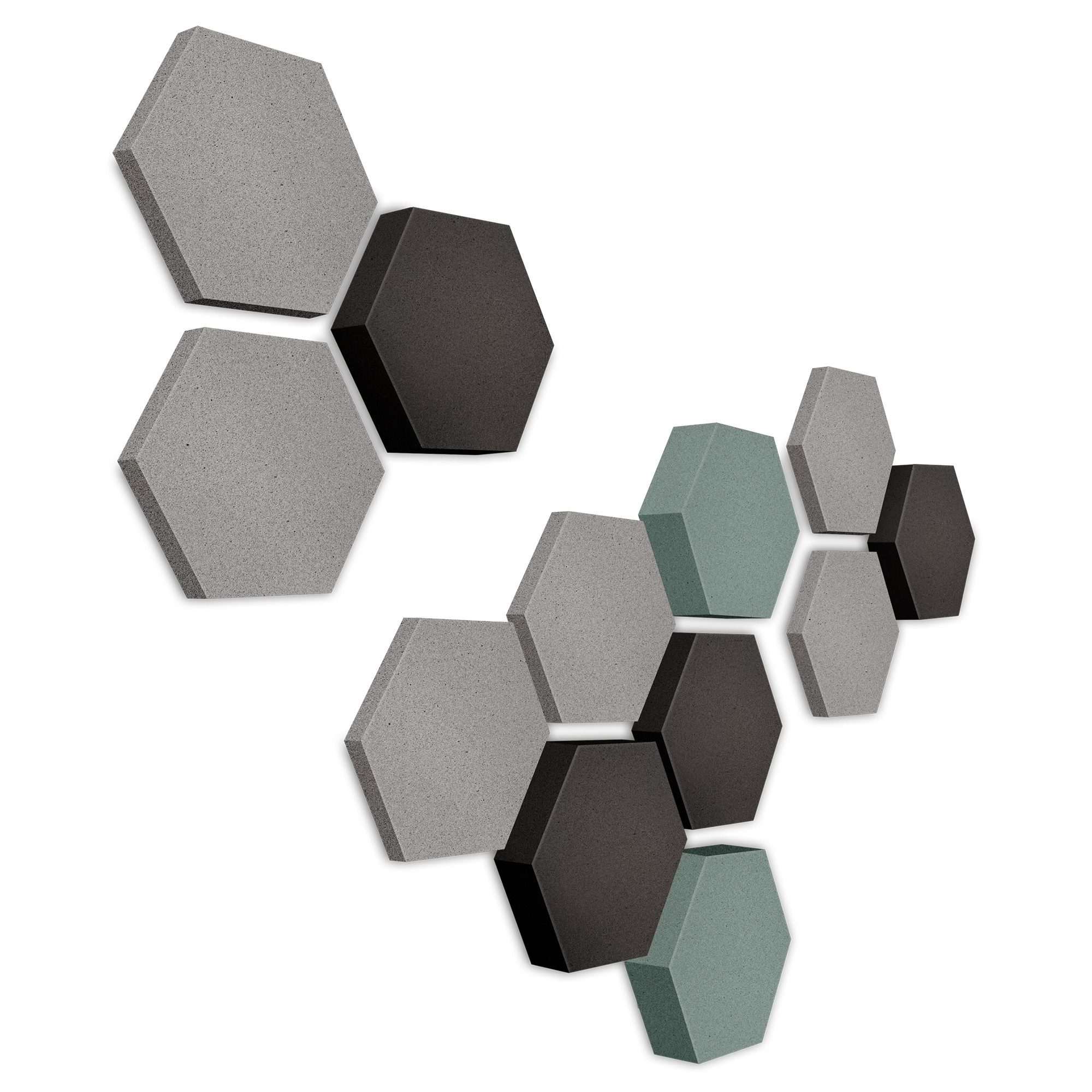 Lieferumfang: 12 Akustikelemente je 6 Waben Ø 300 x 30 mm / je 4 Waben Ø 300 x 50 mm / je 2 Waben Ø 300 x 70 mm SMART - MODERN - URBAN - ÄSTHETISCH... CREATE YOUR STYLE! Handcrafted Quality Hochwertiges Premiumprodukt aus deutscher Produktion Schalldurchlässige Beschichtung für optimale Akustikwerte Sichtseiten mit spezieller Akustikoberfläche in zahllosen Farbvarianten Die Porenstruktur des Materials sorgt für eine optisch ansprechende Oberfläche Optimiert und verbessert die Raumakustik Absolut geruchsneutral Basotect ist flammhemmend Leicht an Wand und Decke anzubringen Kann auch auf Trägermaterial montiert werden Technische Daten Basotect : Brandspezifikation Basotect: DIN4102-1: B1, FMVSS 302 a.o. Temperaturbeständig bis zu + 240°C Raumgewicht: ca. 9 kg/m³ Anwendungsbeispiele Breitbandabsorber - Raumakustik - Musikzimmer - Gaststätten - Restaurants - Heimkino Proberaum - Hallreduzierung - Kanzleien - Behandlungszimmer - HiFi-Anlagen - Industrieanwendungen - Besprechungsräume - Tonstudio u.v.m.