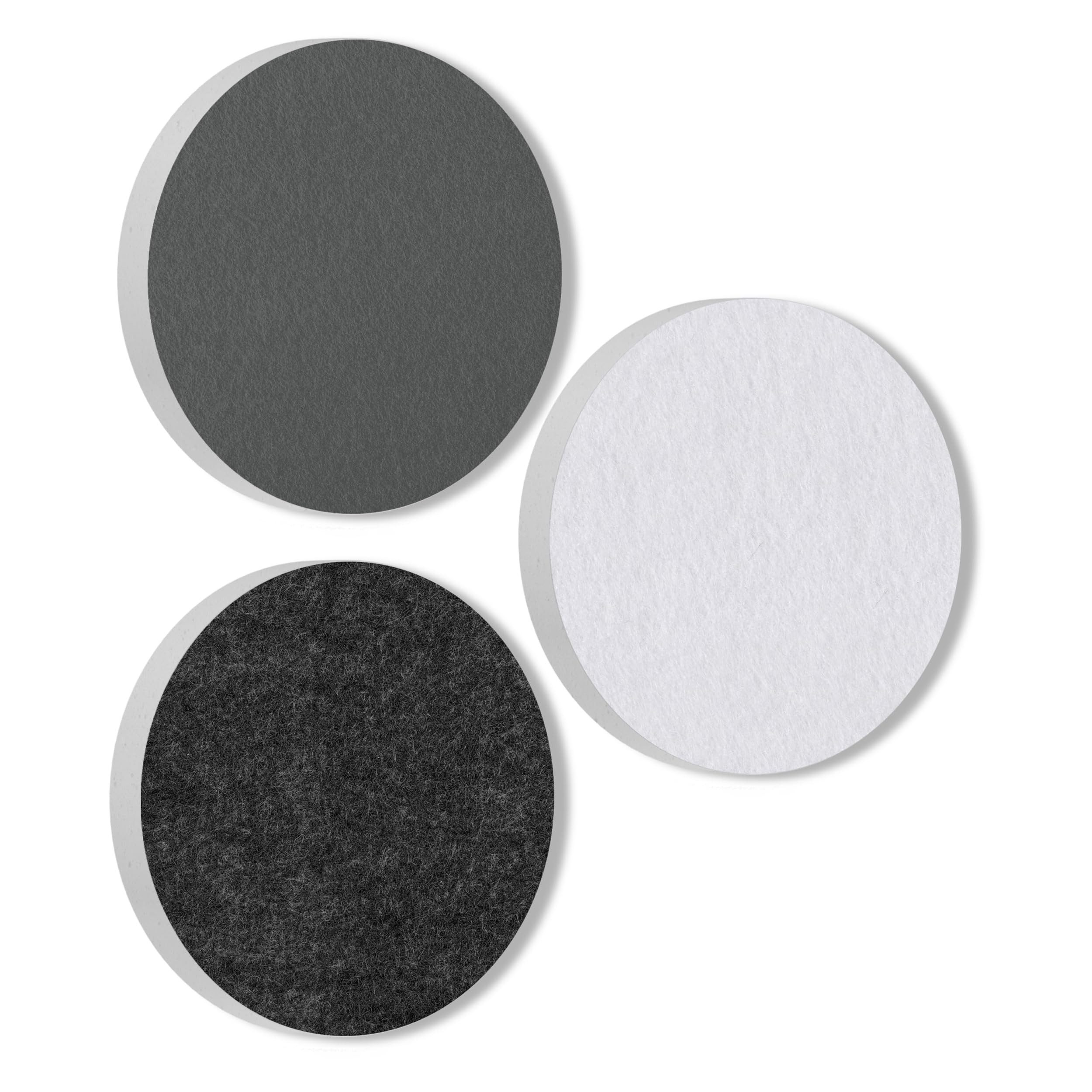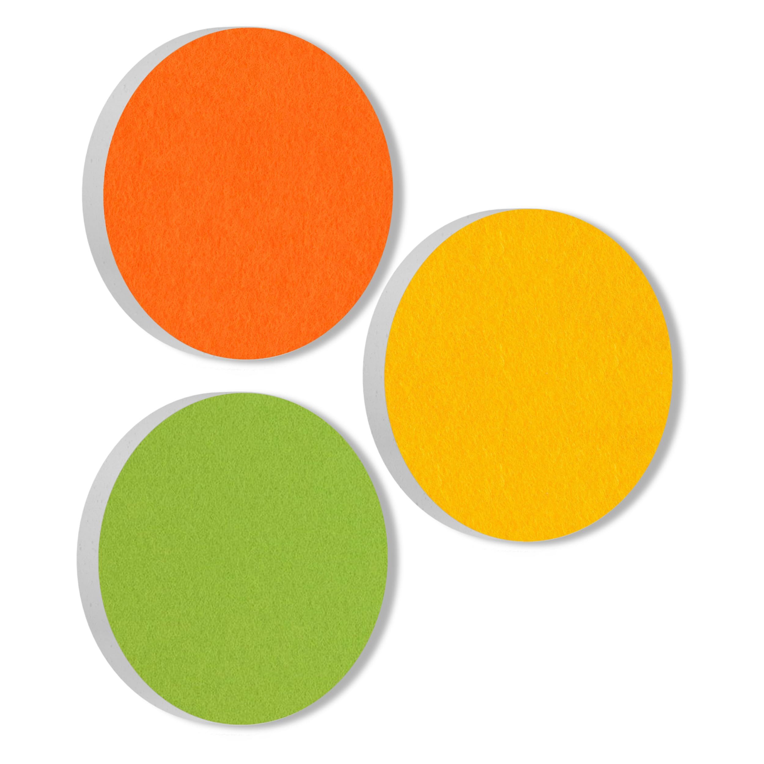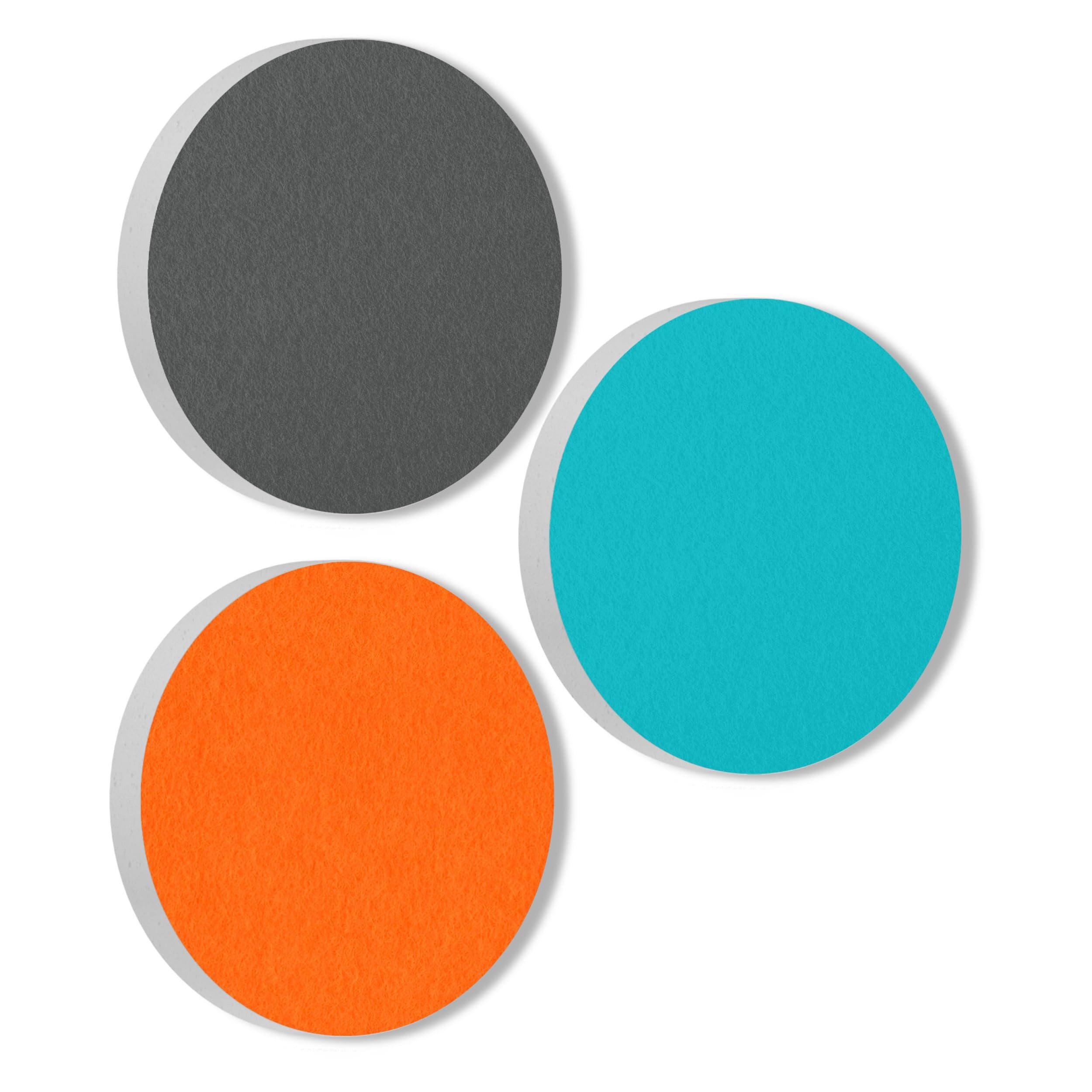 Optimieren Sie die Raumakustik und erleben Sie ein einzigartiges Klangerlebnis mit unseren Akustikpaneelen “Colore”. Das Set enthält handgefertigte Akustikelemente aus hochwertigem Akustikschaumstoff mit einer hochwertigen Akustikfilzoberseite. Die offenzellige Struktur des Akustikschaums ermöglicht eine effektive Schallabsorption und reduziert Hall. Genießen Sie eine angenehme Raumakustik mit sattem Sound. Unsere „Colore“-Reihe bringt Farbe ins Spiel, ohne dass Sie auf die hervorragenden Werte, die der Akustikschaumstoff Basotect G+ erzielt, verzichten müssen. Von uns präzise in Form gebracht, können Sie die verschiedenen Akustikelemente dieser Produktreihe nach Lust und Laune kombinieren. So werden Nutzen und Design in Einklang gebracht. Sorgen Sie für mehr Ruhe und Wohlbefinden und eine ästhetische und moderne Raumgestaltung ganz nach Ihren Wünschen Die Montage ist denkbar einfach: Sie können die Akustikpaneele leicht an Wand und Decke anbringen. Dadurch sind sie vielseitig einsetzbar. Die Akustikpaneele “Colore” werden aus Basotect G+, einem hochwertigen Akustikmaterial, in Deutschland hergestellt. Sie erfüllen höchste Qualitätsstandards und sind absolut geruchsneutral. Zudem ist Basotect flammhemmend nach DIN4102-1: B1, FMVSS 302 und temperaturbeständig bis zu +240°C, was zusätzliche Sicherheit bietet. Das Raumgewicht beträgt ca. 9 kg/m³. Finden Sie bei platino24 alles rund um das Thema Schalldämmung und Raumakustik! Unser Ziel ist es, Ihnen erstklassige Akustiklösungen zu bieten. Ob in privaten Räumen, fürs Gaming oder in öffentlichen Bereichen wie Schulungsräumen, Restaurants, Behandlungszimmer, Besprechungsräume etc. - wir sorgen überall für beste Akustik! Lieferumfang 3 Akustikelemente Kreis mit hochwertiger Akustikfilz-Oberfläche: