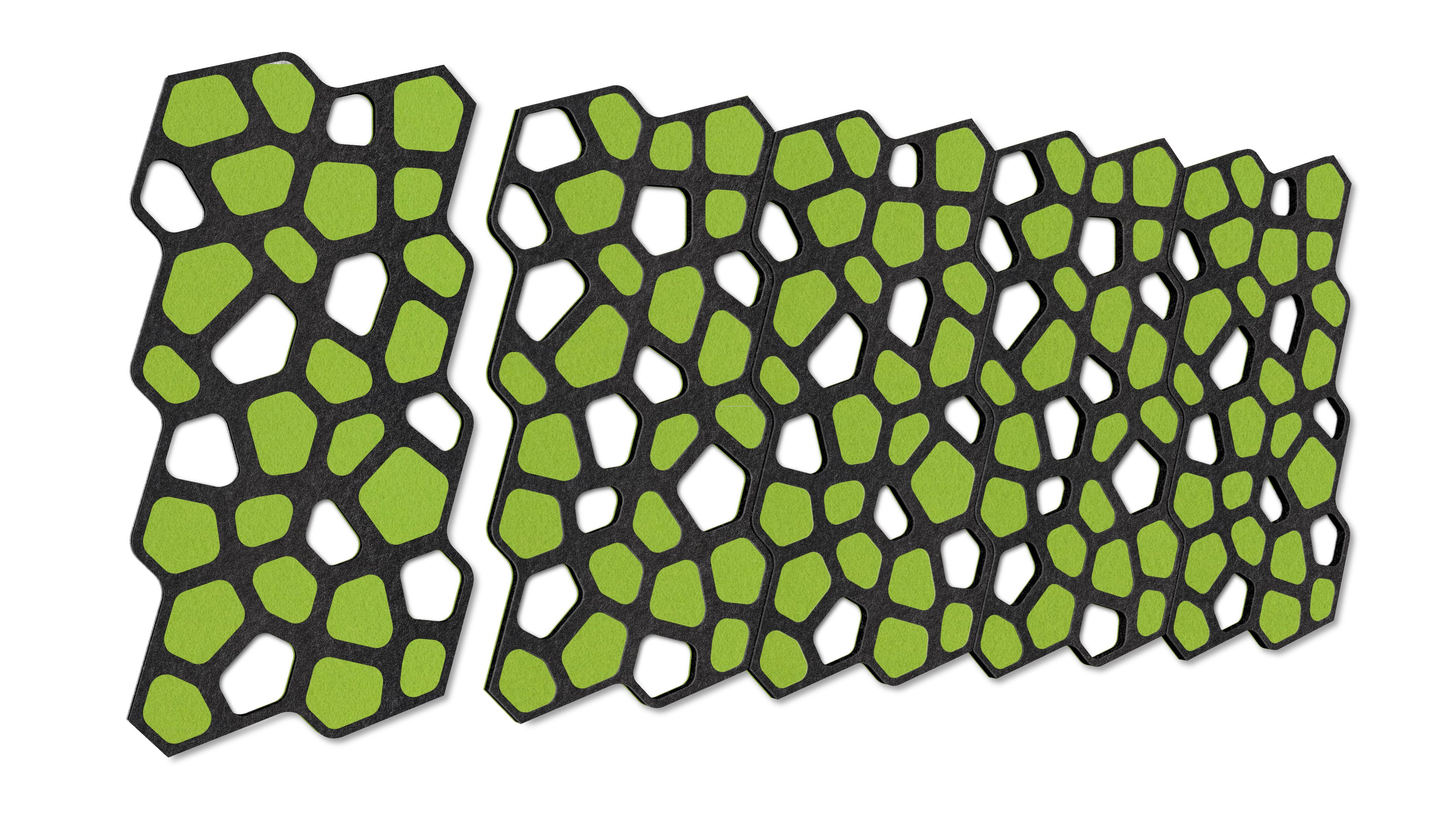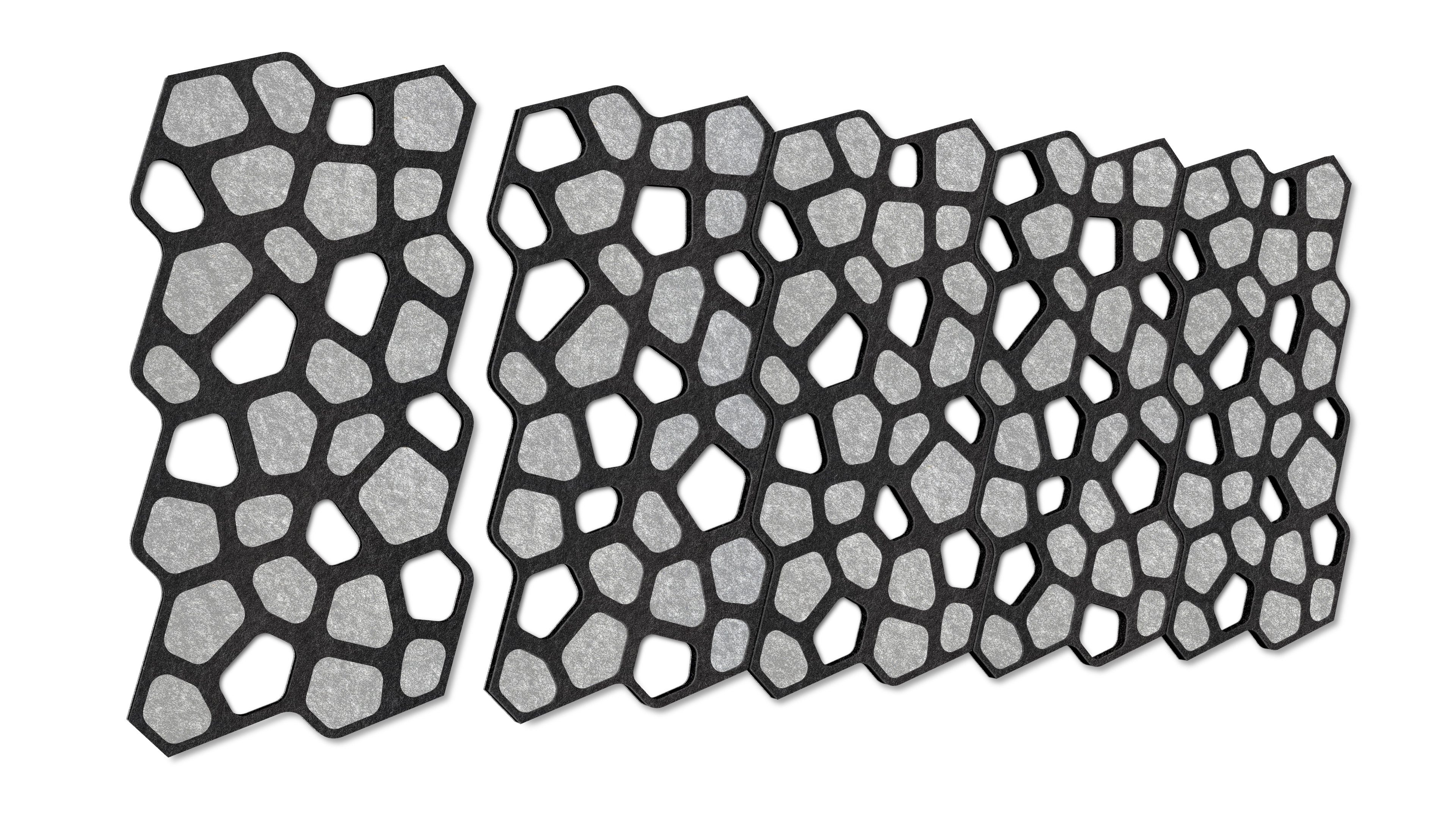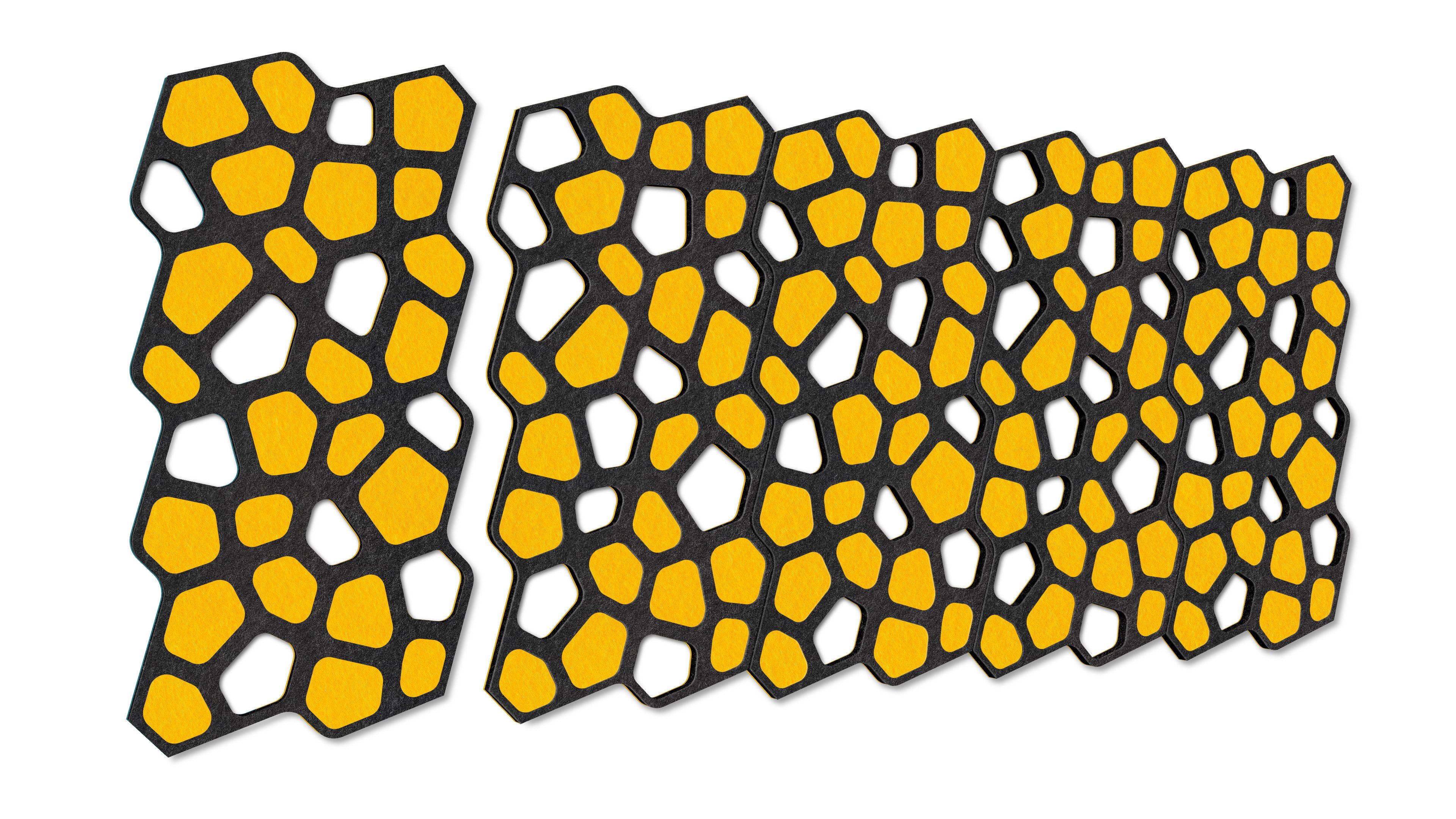 Der Werkstoff aus fest verpressten Akustikfasern ist hocheffizient in der Schallabsorption, äußerst langlebig, extrem robust, recyclebar und schwerentflammbar.
