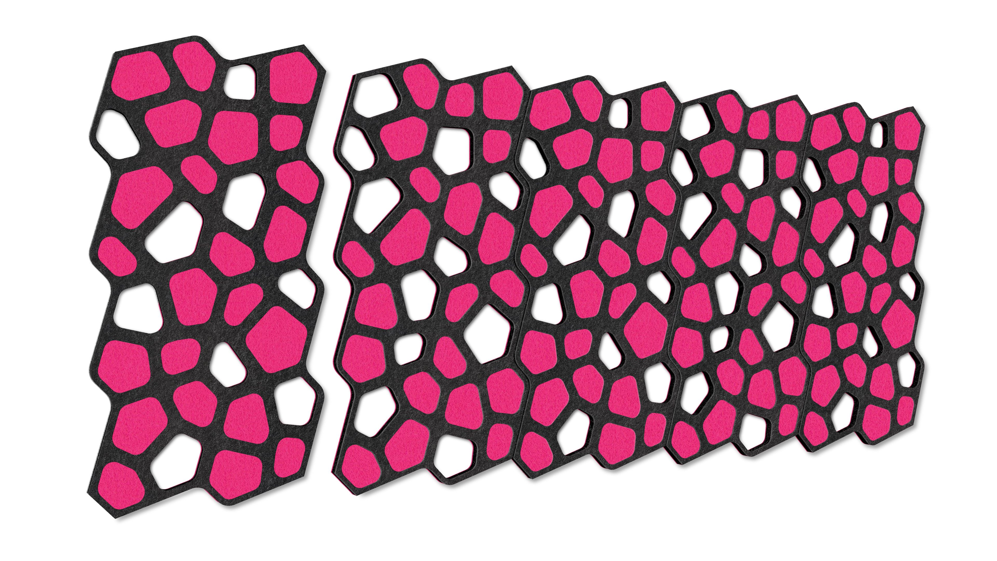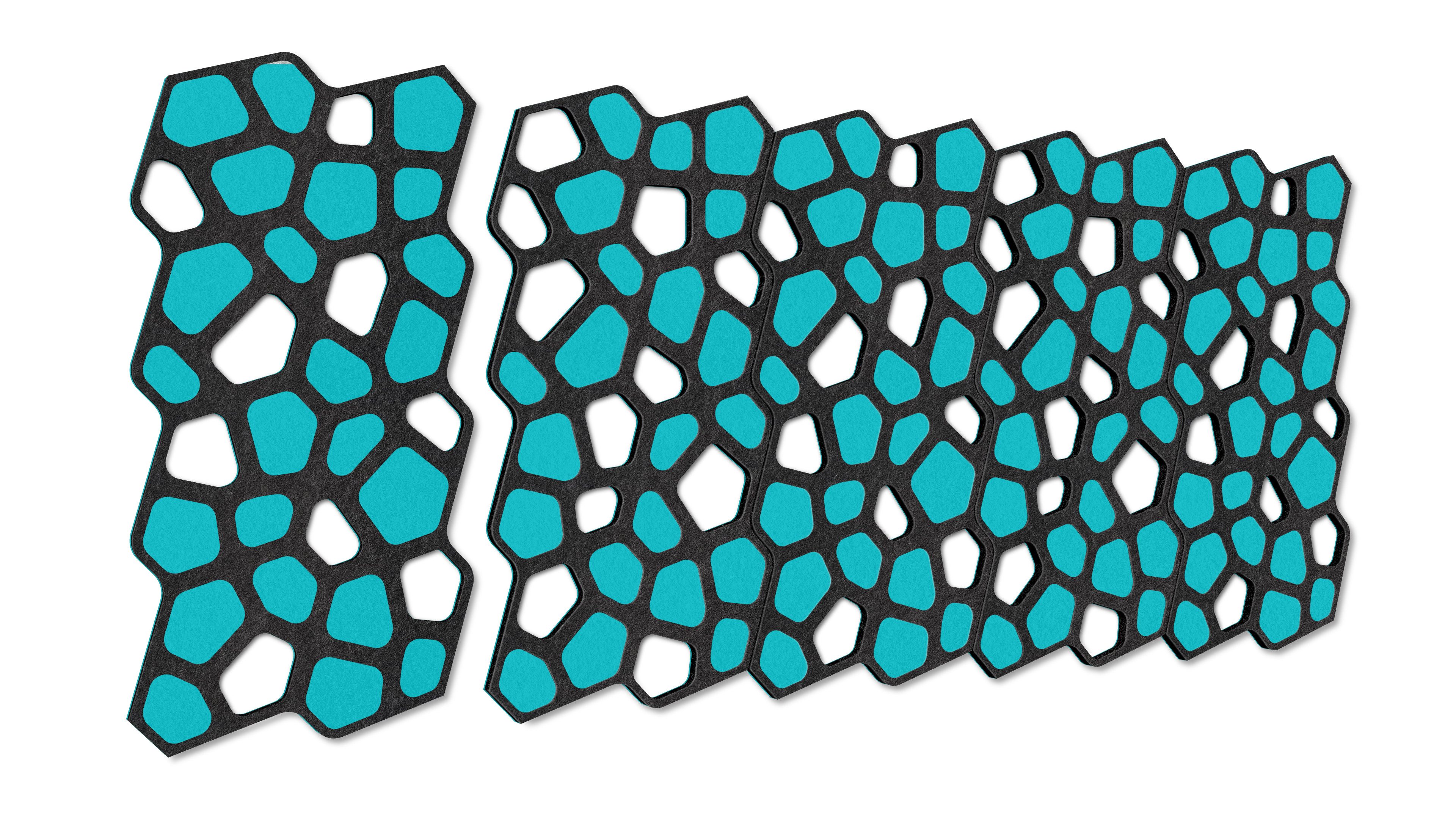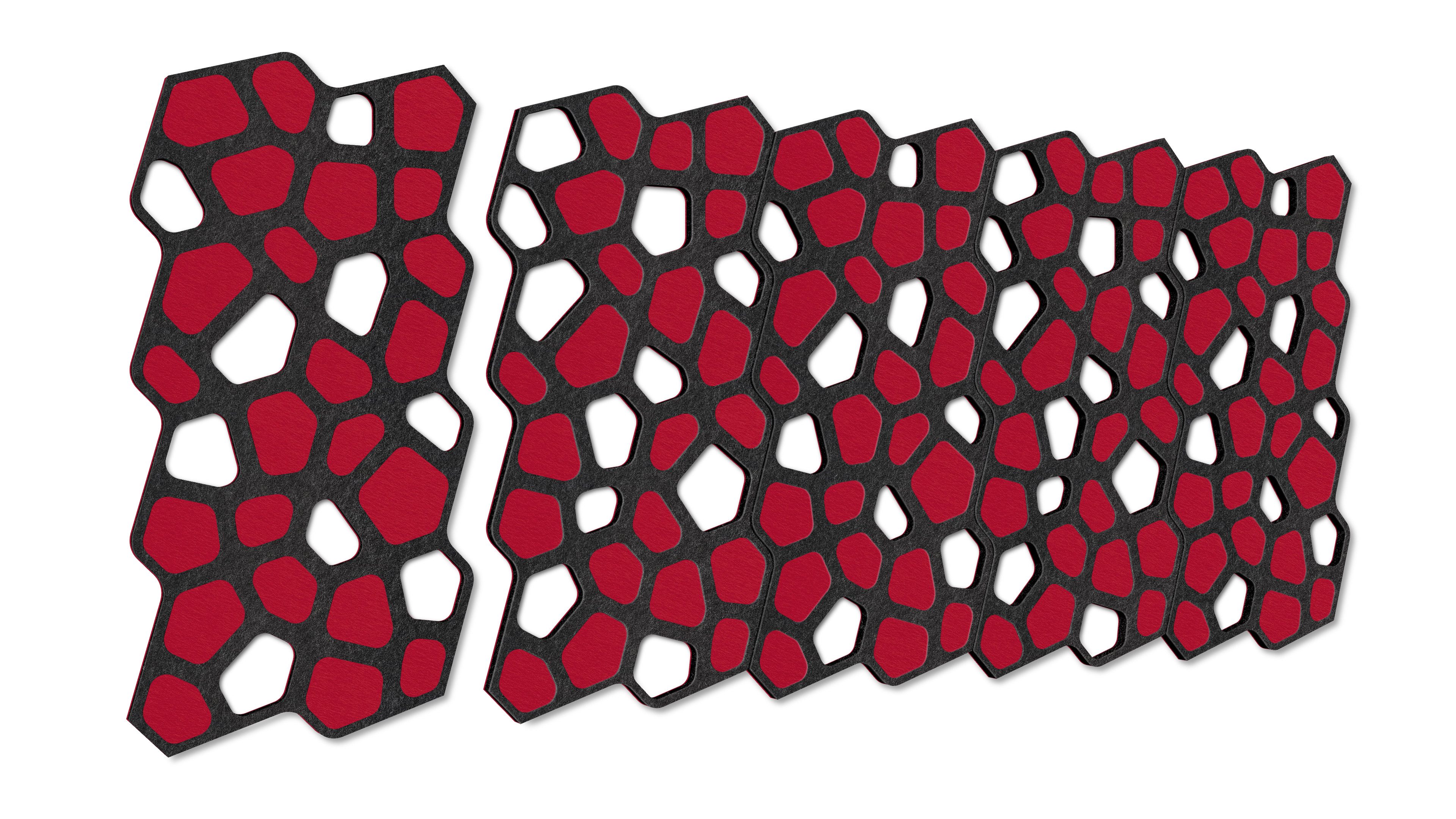 Der Werkstoff aus fest verpressten Akustikfasern ist hocheffizient in der Schallabsorption, äußerst langlebig, extrem robust, recyclebar und schwerentflammbar.