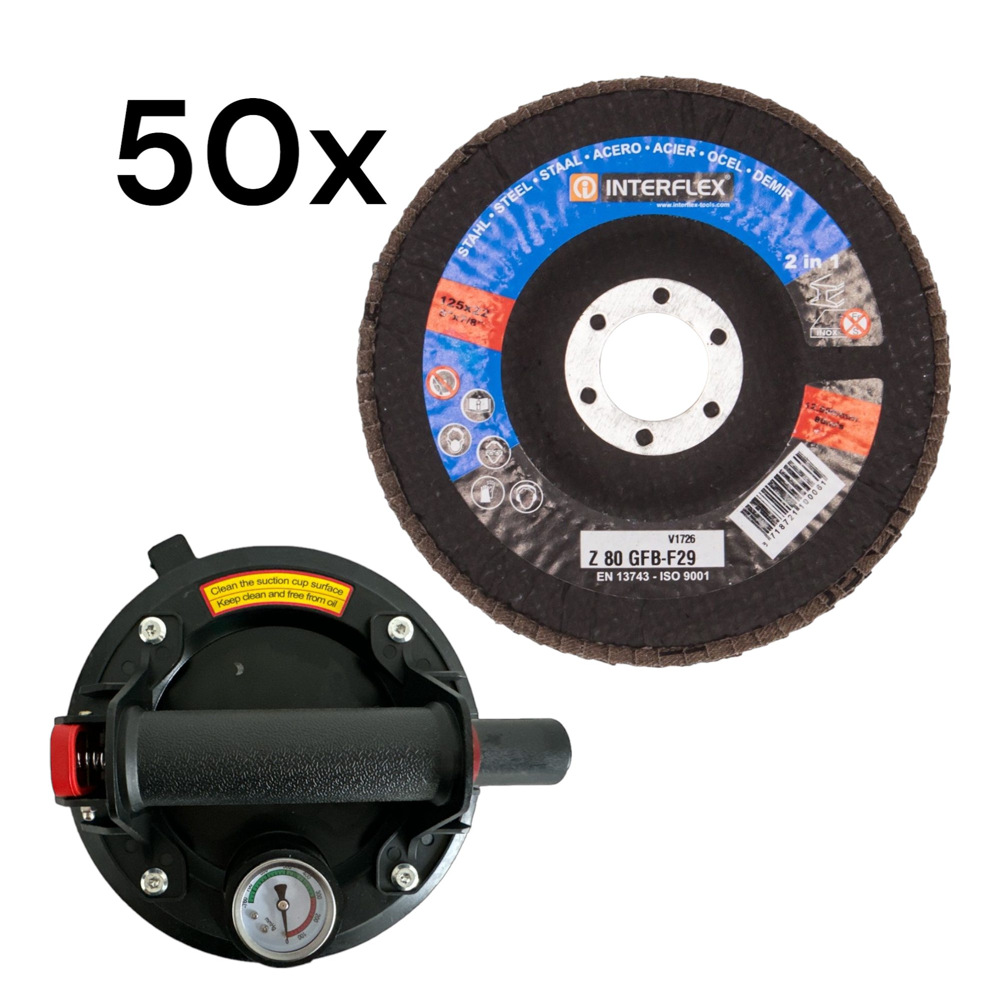 Saugnapf 1er, mit Manometer für Materialtransport – geeignet für Glas, Laminat, Fliesen– ca.21x9.5cm – 220kg