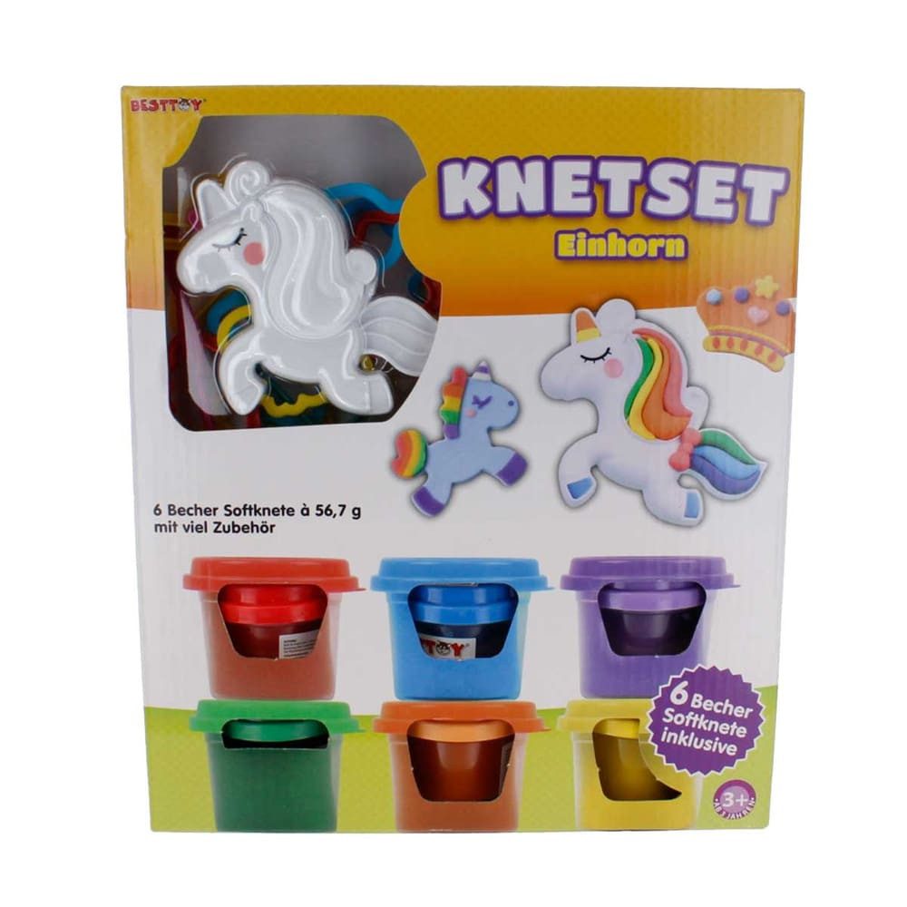 Lass deiner Fantasie freien Lauf mit dem bezaubernden Knetset „Einhorn“ von Besttoy! Dieses tolle Set bietet alles, was kleine Einhorn-Fans brauchen, um ihre eigenen magischen Welten zu erschaffen.Das Set enthält 6 Becher Softknete in bunten Farben, mit denen Kinder wunderschöne Einhörner, Regenbögen, Blumen und andere fantasievolle Kreationen formen können. Das weiche Knetmaterial ist angenehm in der Handhabung und fördert die Feinmotorik sowie die kreative Vorstellungskraft.Zusätzlich gibt es viel Zubehör, um die Knetkunst noch spannender zu machen: kleine Zauberstäbe, Hörner, Flügel, Blumen und vieles mehr - so entstehen im Handumdrehen zauberhafte Einhorn-Werke!Dieses Knetset ist perfekt für fantasievolles Spielen im Kinderzimmer, unterwegs oder bei Freunden. Es sorgt für stundenlangen kreativen Spaß und regt die Fantasie der kleinen Künstler an.Entdecke jetzt das Knetset „Einhorn“ von Besttoy und erschaffe deine eigene magische Einhorn-Welt! Achtung! Nicht geeignet für Kinder unter 3 Jahren. Verschluckbare Kleinteile. Erstickungsgefahr! Formen, drücken, loskneten! Entdecke jetzt unsere bunte Knete für Kinder und bring kreative Ideen ganz einfach in Form - der Knetspaß kennt keine Grenzen!
