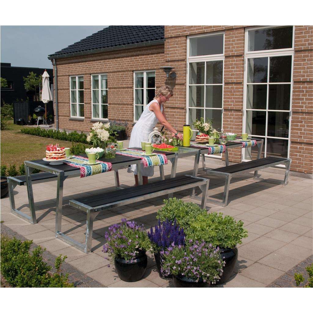 Dieses Set – bestehend aus einem Tisch und zwei fest integrierten Bänken – vereint Stabilität, Komfort und skandinavisches Design. Es eignet sich sowohl für die dauerhafte Platzierung im Freien als auch für modulare Erweiterungslösungen.