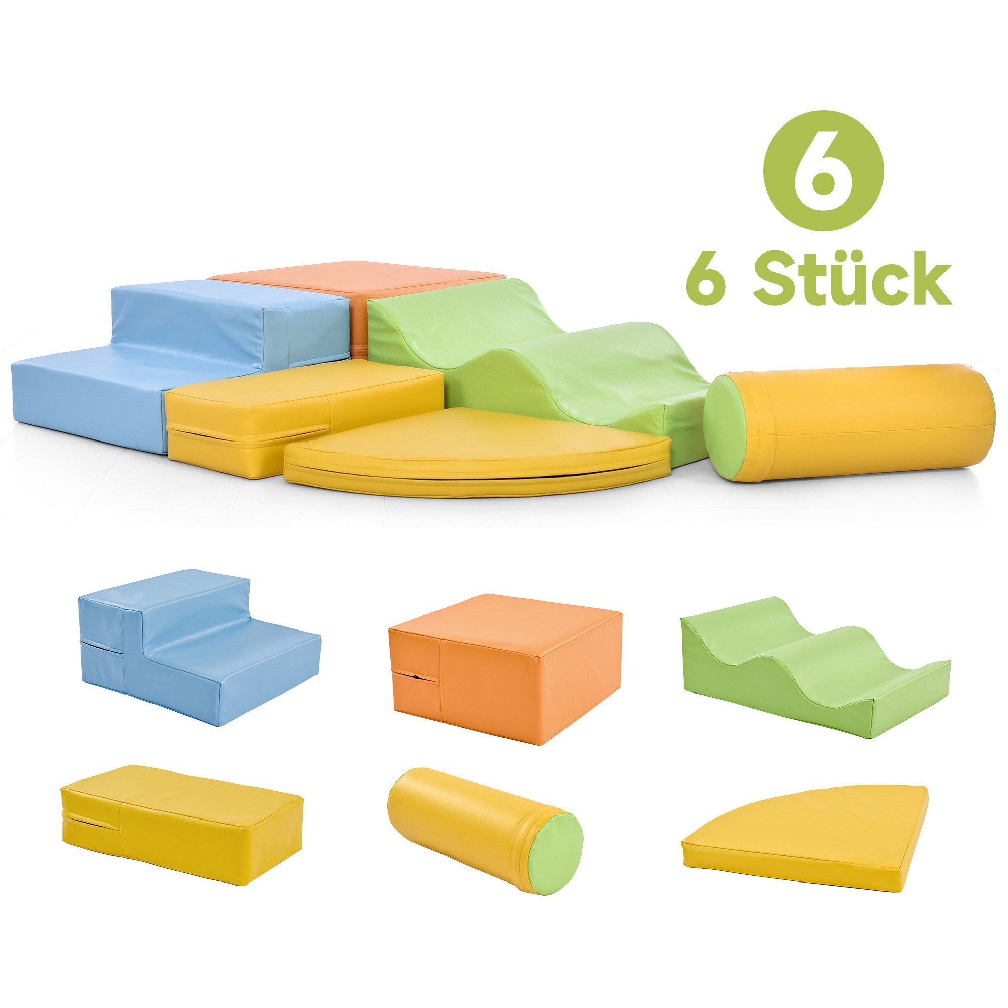 1.5-in-1 Multifunktionalität: Dieses Set aus fünf Bausteinen bietet unzählige Spielmöglichkeiten. Kinder können die Bausteine nach Belieben kombinieren, um spannende Spielwelten zu erschaffen. Ob als Klettergerät, Krabbelbereich oder sogar als bequeme Matte – die Einsatzmöglichkeiten sind vielfältig.