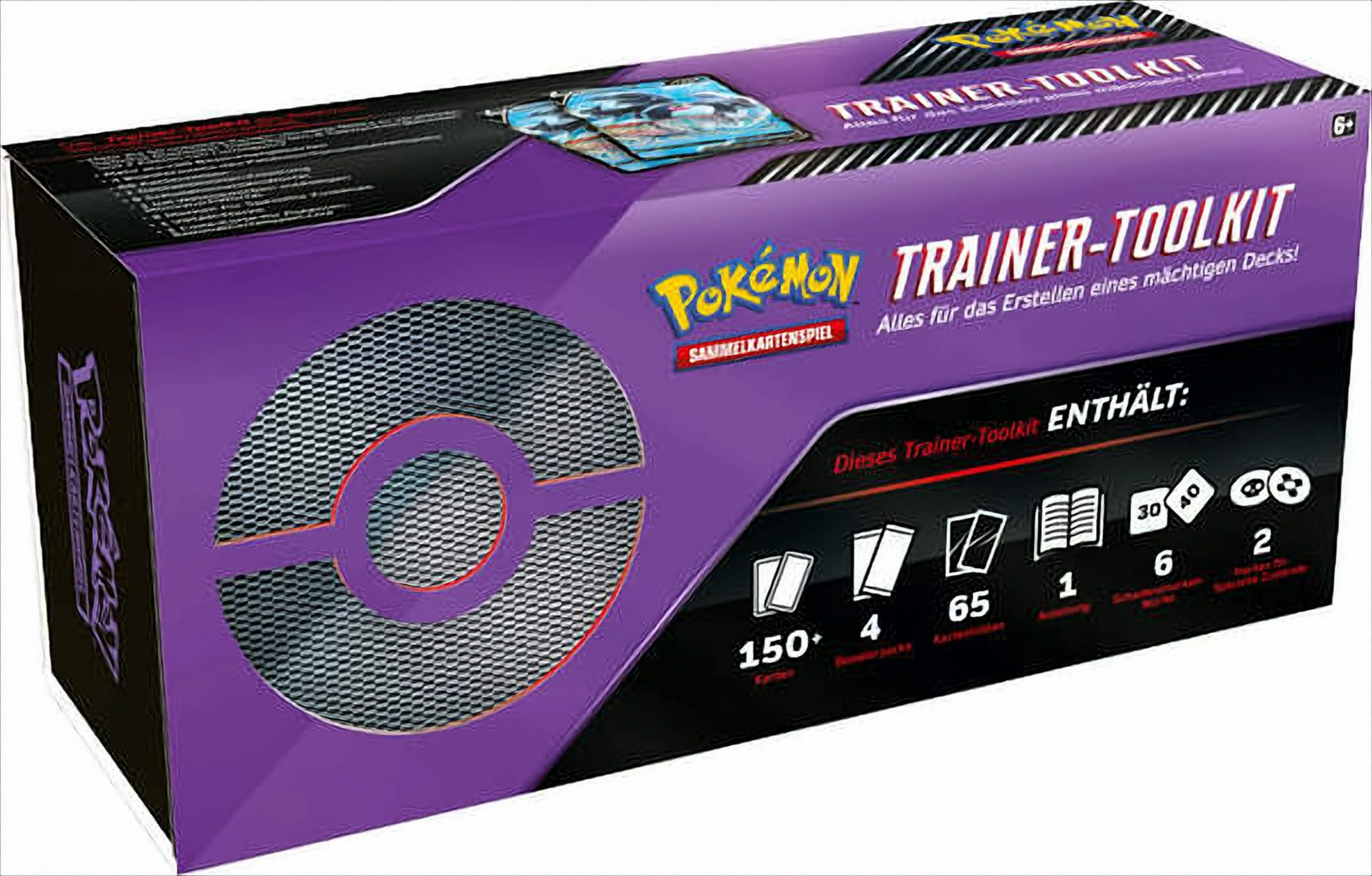 Das Trainer-Toolkit des Pokémon-Sammelkartenspiels enthält: Mehr als 50 nützliche Karten, um deine Decks zu verstärken, inklusive Dutzender Trainerkarten, 6 Spezial-Energiekarten und 2 Exemplare von Lumineon-V, Mehr als 100 Basis-Energiekarten, 4 Boosterpacks des Pokémon-Sammelkartenspiels, 65 Kartenhüllen, 1 Deckentwickler-Anleitung, 6 Schadensmarken-Würfel, 1 bei Wettbewerben zulässigen Münzwurf-Würfel, 2 Marken für Spezielle Zustände, 1 VSTAR-Marke, 1 Code-Karte für Pokémon-Sammelkartenspiel-Live