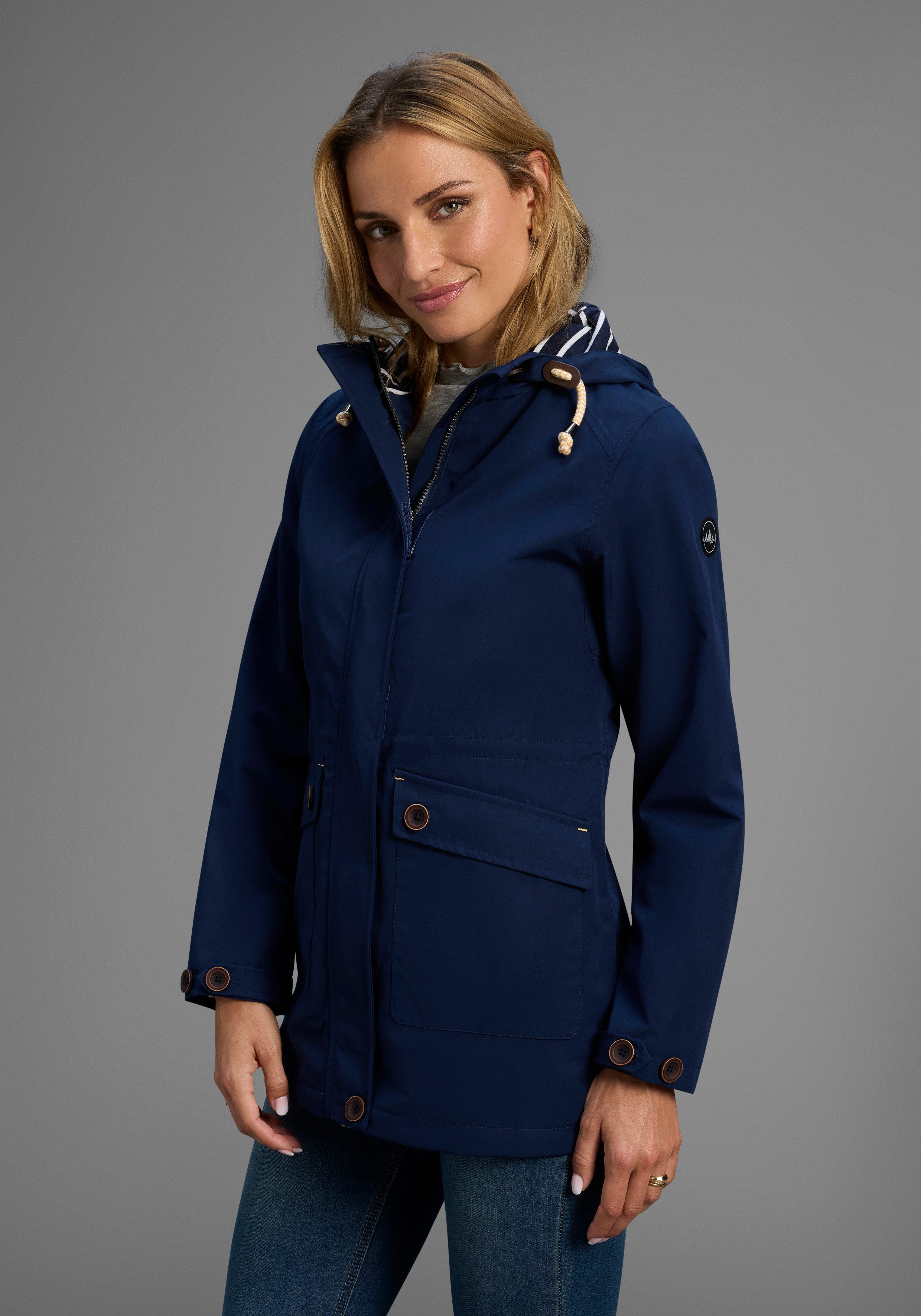 Bist du gerne im Freien unterwegs, dann ist der Funktionsparka von Polarino gut geeignet für dich. Der Badge bringt optische Highlights ins Outfit. Der Schnitt des Funktionsparkas ist Po-bedeckend und weit, sodass du dich nicht eingeengt fühlst. Die Kapuze kannst du mit einem Kordelzug individuell anpassen. Dank der Jersey-Fütterung bleiben Ohren und Kopf geschützt. Mit den aufgesetzten Taschen wird der Look abgerundet und dafür gesorgt, dass Kleingeld und Smartphone immer griffbereit sind.
