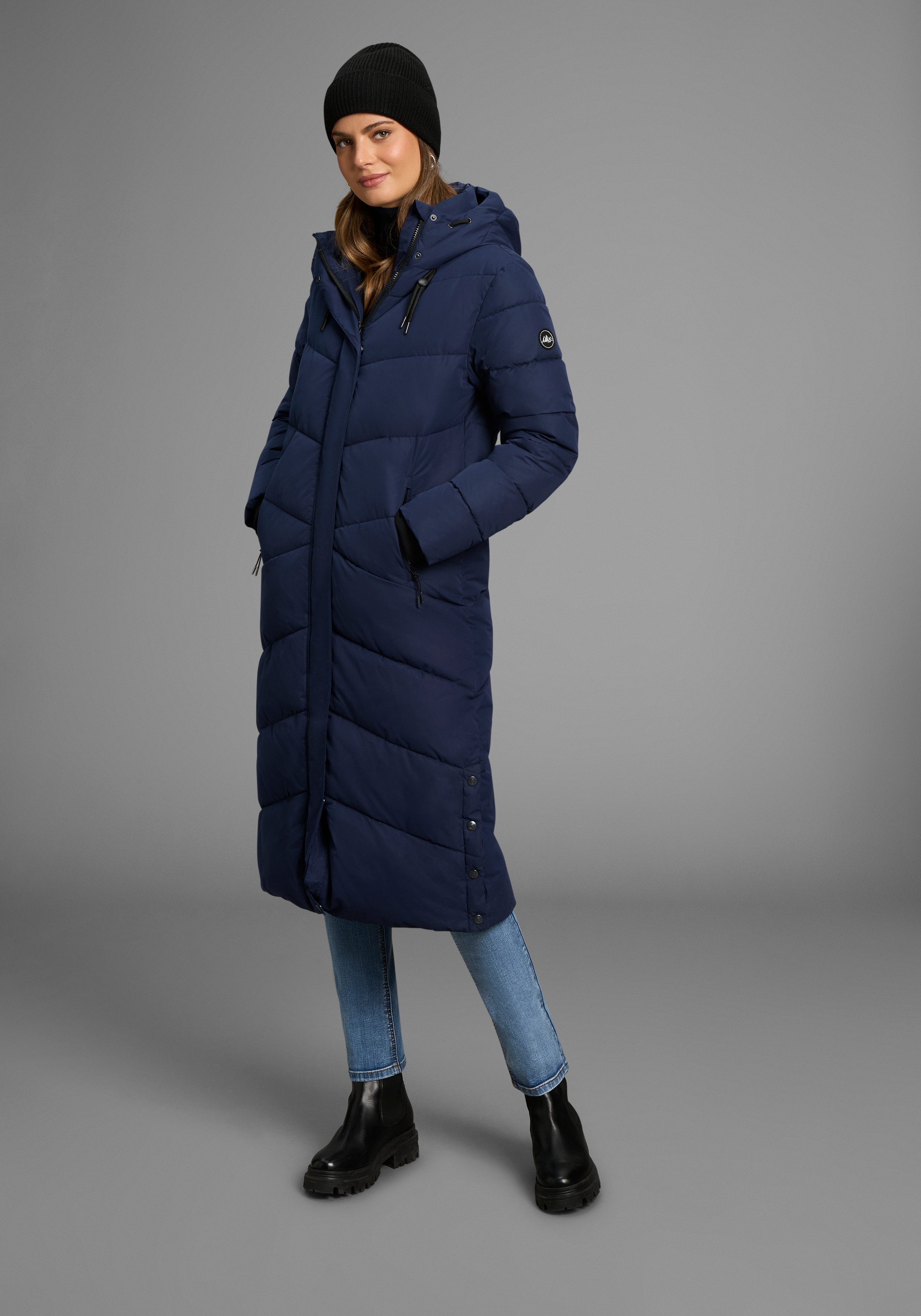 Mit dem Steppmantel von Polarino liegst du richtig. Mit dem 2-Wege-Reißverschluss ist er sehr praktisch beim Fahrradfahren. Für einen coolen Look sorgt der Badge. Die langen Ärmel schließen mit einem Rippbündchen ab. Damit lässt sich die Ärmellänge variieren, indem du sie normal oder hoch geschoben trägst. Der Steppmantel ist besonders lang. Die Kapuze kannst du mit einem Kordelzug in der Weite verstellen. Sie ist weich gefüttert und hält deine Ohren warm. Mit den Innentaschen ist der Look komplett und Wertgegenstände sind immer griffbereit.