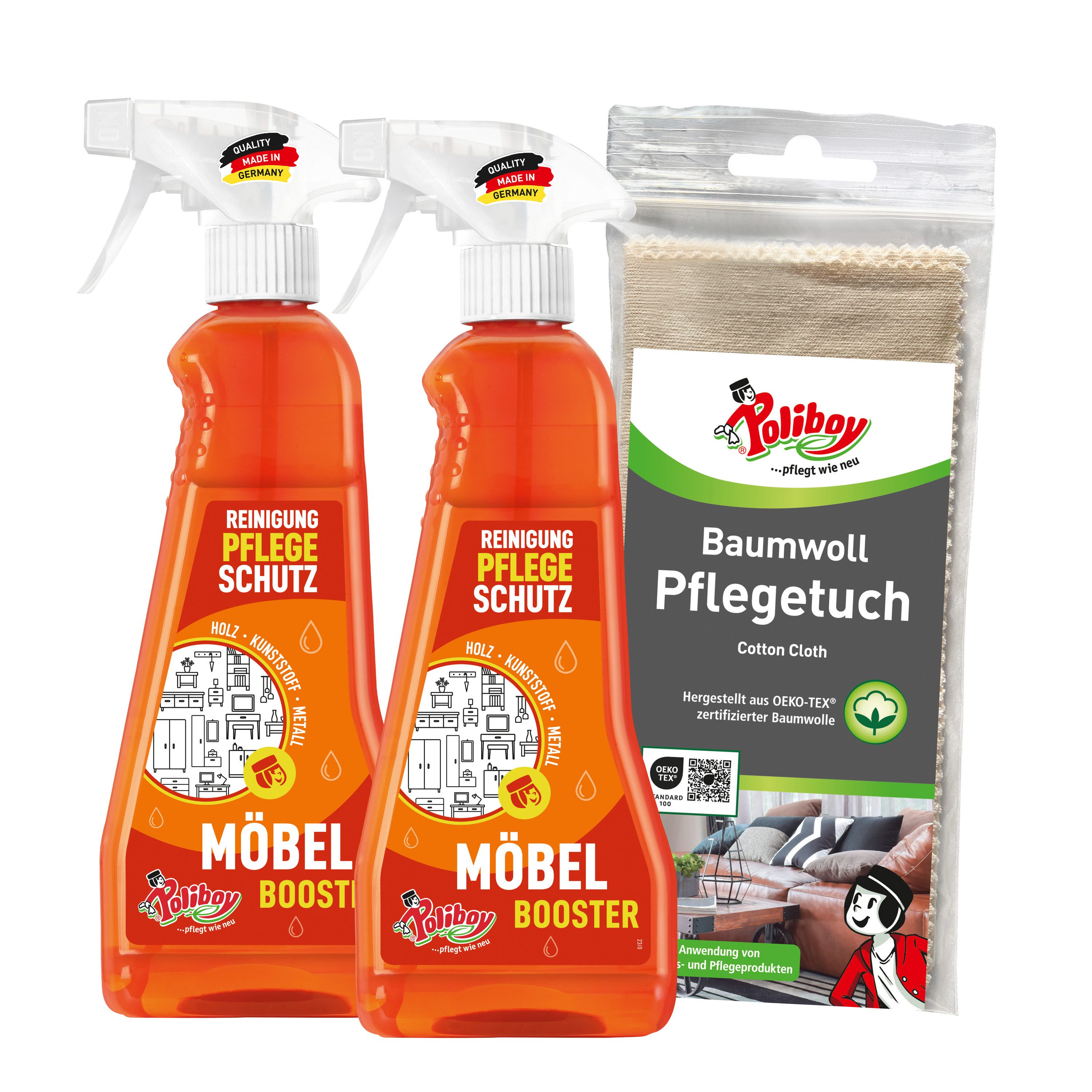 Der Möbel Booster sorgt für neues Leben in müden Möbeln: Staub und Schmutz haben gegen ihn keine Chance. Er reinigt, schützt und pflegt Möbel aus versiegeltem Holz, Kunststoff oder Metall.