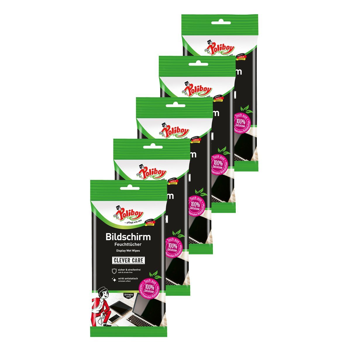 Die Putztücher entfernen Verschmutzungen und Staubablagerungen mit einem Wisch. Ohne Nachwischen sind die Oberflächen streifenfrei sauber. Der Staub wird nicht aufgewirbelt, sondern im Tuch festgehalten. Das hochwertige fusselfreie Spezialvlies getränkt mit besonders ausgewählten Wirkstoffen ergibt eine streifenfreie Reinigung, die speziell bei Computermonitoren sehr wichtig ist. Die zusätzliche Antistatikwirkung sorgt für eine reduzierte Staubablagerung, Nachwischen oder die Verwendung von zwei unterschiedlichen Tüchern wie bei vielen anderen Produkten ist mit POLIBOY nicht notwendig. Sie eignen sich für Fernseher, Monitor, Laptop, Display bei Foto/ Videokamera, Handy, Navigationsgeräte, etc. Das Verpackungsformat mit den teilbaren Maxitüchern ist ideal für die kleine Reinigung nur eines Displays genauso wie für die Reinigung großer Plasmabildschirme. Die Tücher enthalten eine Lotion aus biologisch abbaubaren Tensiden auf pflanzlicher Basis, Hilfsstoffe zur Reinigungsverstärkung, und Konservierungsmittel. Auf die Zugabe von Duftstoffen wurde verzichtet, so dass auch allergiegefährdete Verbraucher diese Tücher benutzen können.