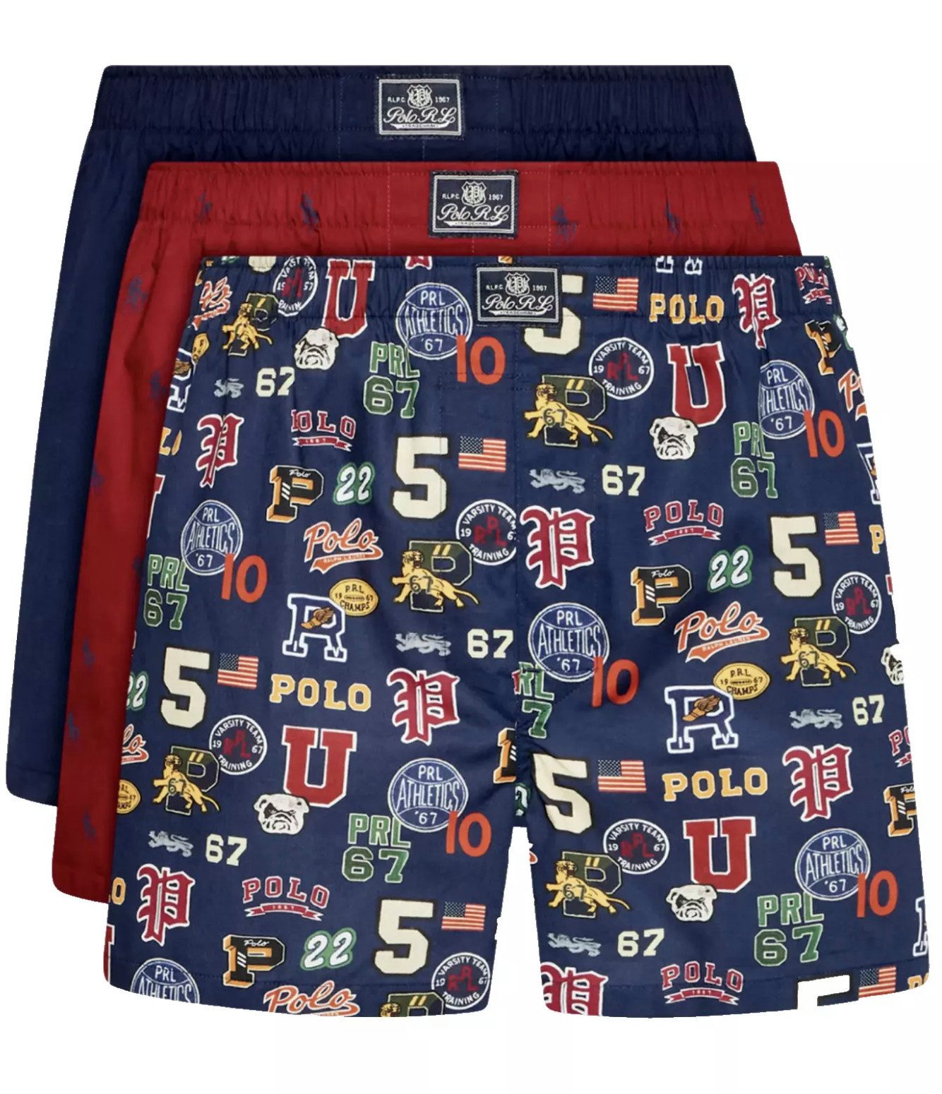 POLO RALPH LAUREN 3er-Pack Boxershorts – Stilvolle und Bequeme Unterwäsche. Dieses Set von Polo Ralph Lauren Boxershorts bietet maximalen Komfort und klassischen Stil. Das 3er-Pack besteht aus weichen Baumwoll-Boxershorts mit elastischem Bund und Polo Ralph Lauren-Logo auf der Vorderseite. Enthalten sind eine schlichte marineblaue Boxershorts, eine rote mit Multi-Rider-Print und eine mit Universitätsdesign. Der kontrastreiche Gummizug mit Logo-Applikation verleiht den Boxershorts einen modernen Touch.