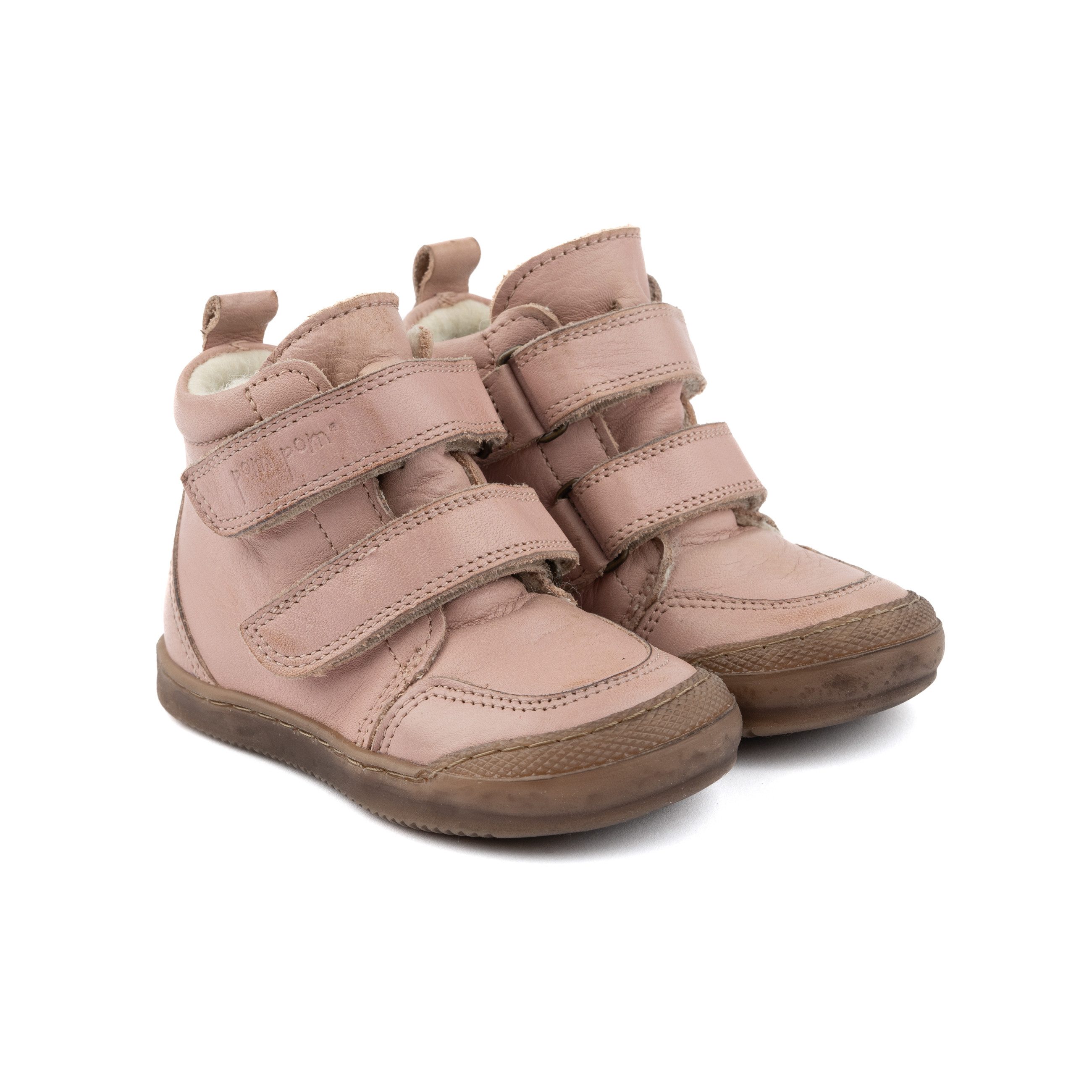 Aus weichem Leder und mit Wollinnenfutter. Der Schuh hat eine flexible Sohle, was gut für die Kleinsten ist.